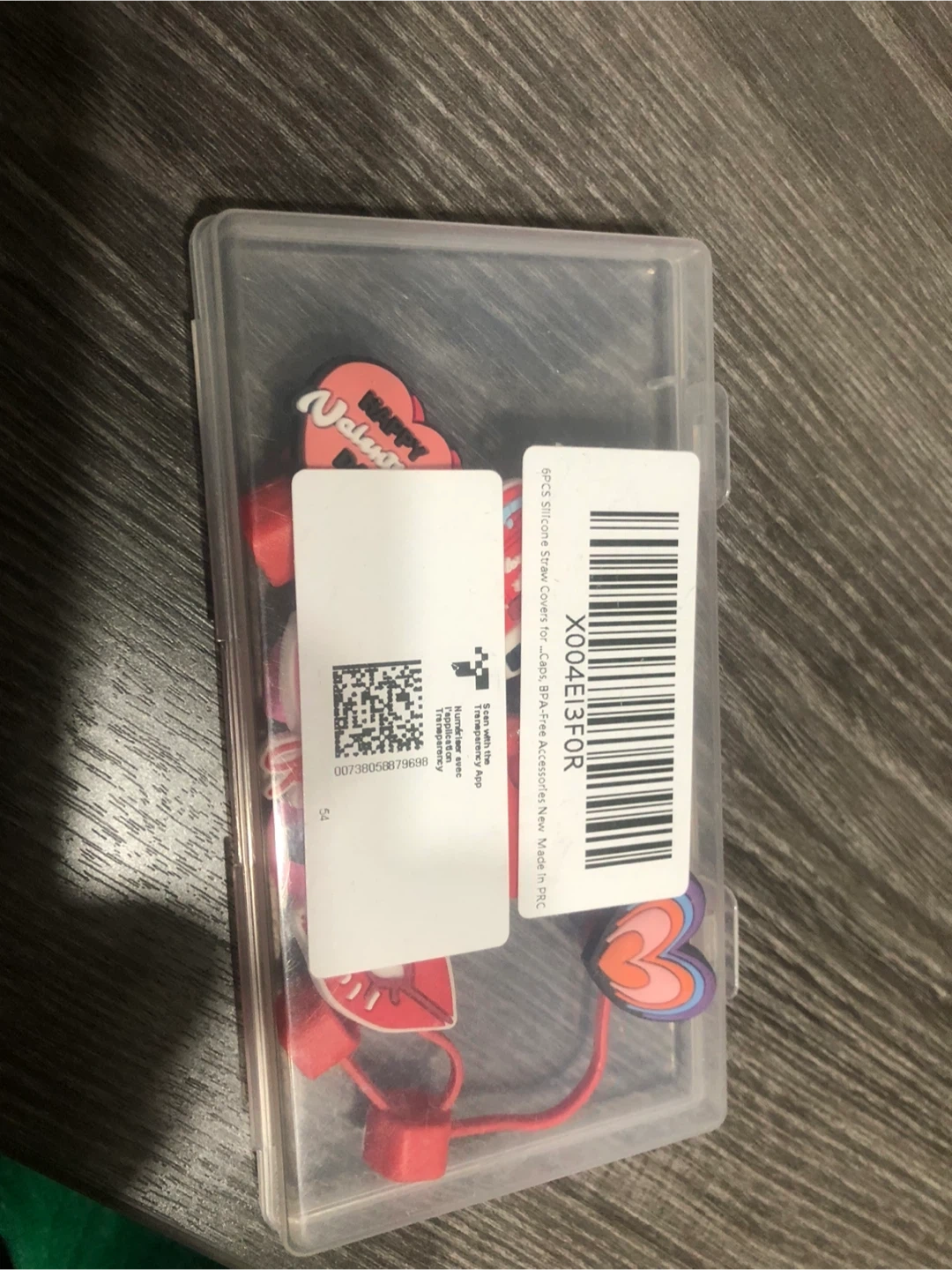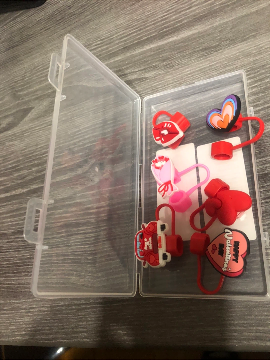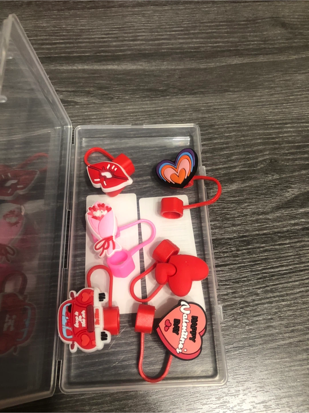 Selling a set of 6 brand new silicone straw covers! They come in a variety of cute Valentine's Day-themed designs, perfect for adding a little fun to your drinks. They are in their original box!