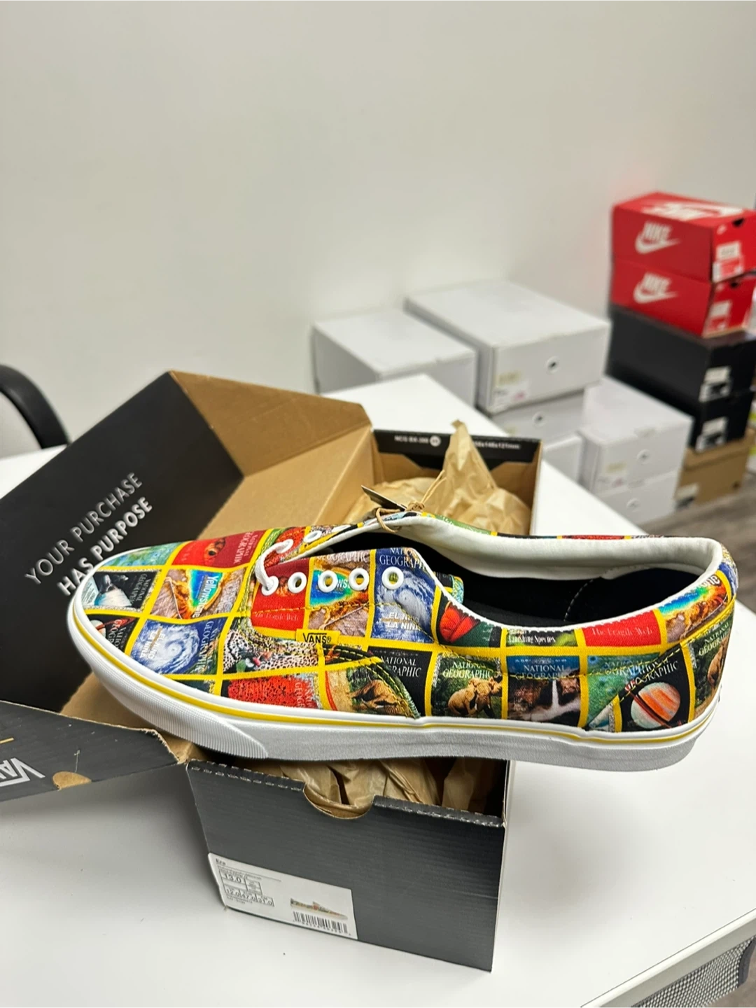 Selling a pair of Vans Era National Geographic shoes in a size 13. These are in great condition and come with the original box. A cool addition to any sneaker collection!