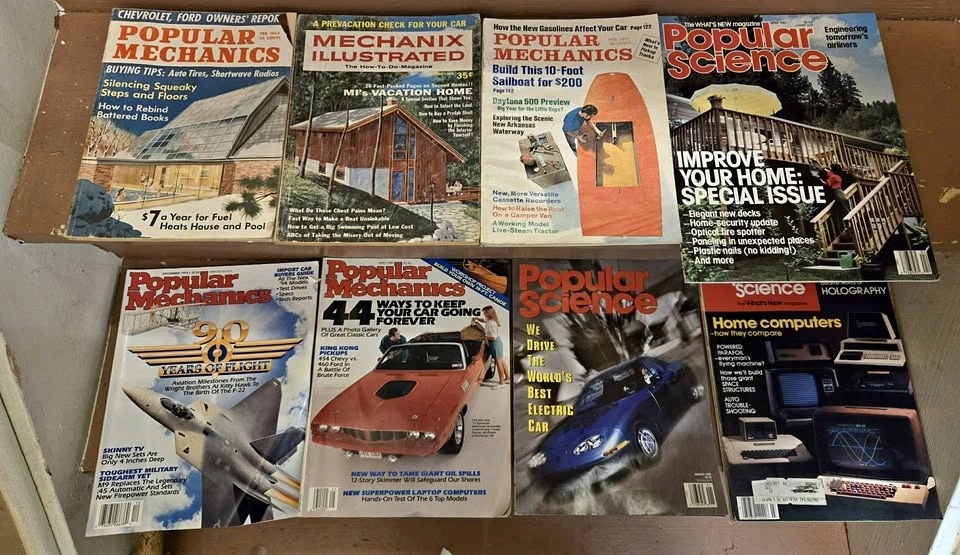Popular Mechanics and Popular Science magazines. Three vintage issues from 1965, '69 and '71, most front the '90s. 32 in total. $45 OBO #cleanout