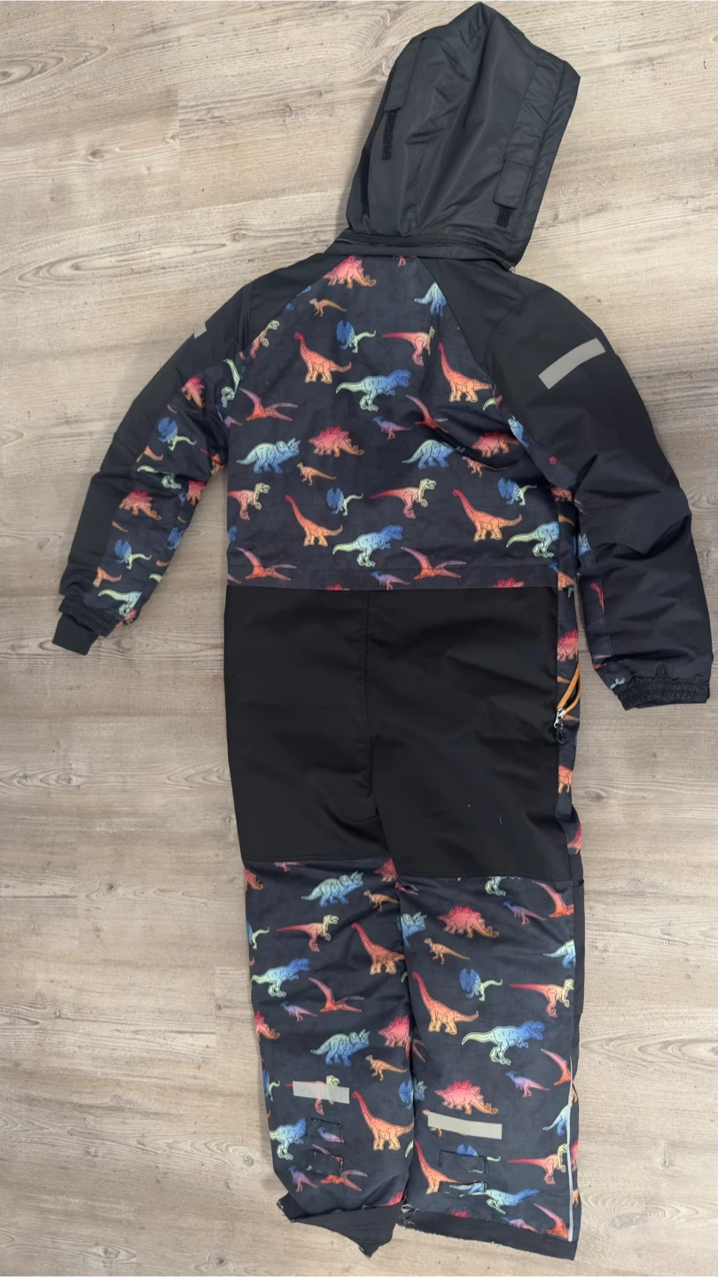 Asking $50. Selling a Deux par Deux one-piece snowsuit in size 12. It features a fun dinosaur pattern on a black background. Excellent condition with no tears, snags or broken zippers. Used for two winters but have out grown it this year. These are very well built snowsuits with reinforcement panels at high wear places and reflective strips for a bit of added safety. Only asking $50