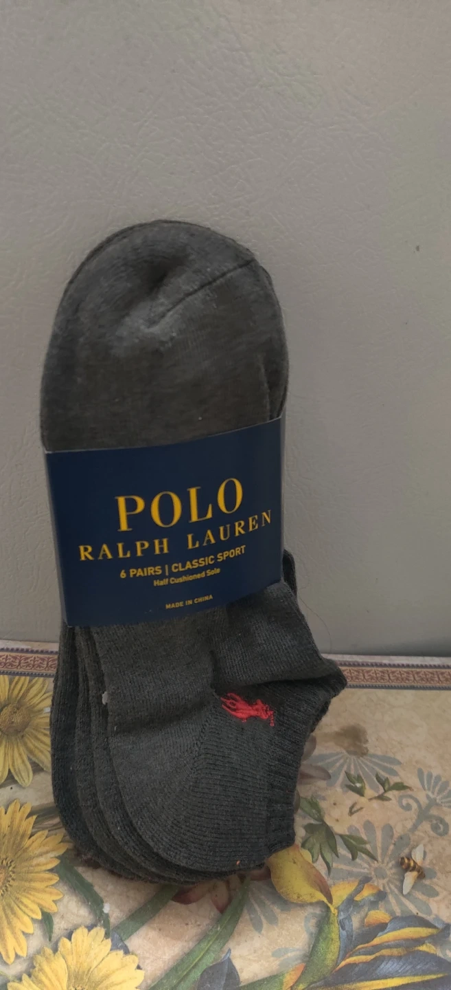 Here are six pairs of Polo Ralph Lauren classic sport socks in size 6-12.5.They are grey with the classic red Polo logo.I will only reserve for 7days.If you cannot pick up within that time then please don't reserve.