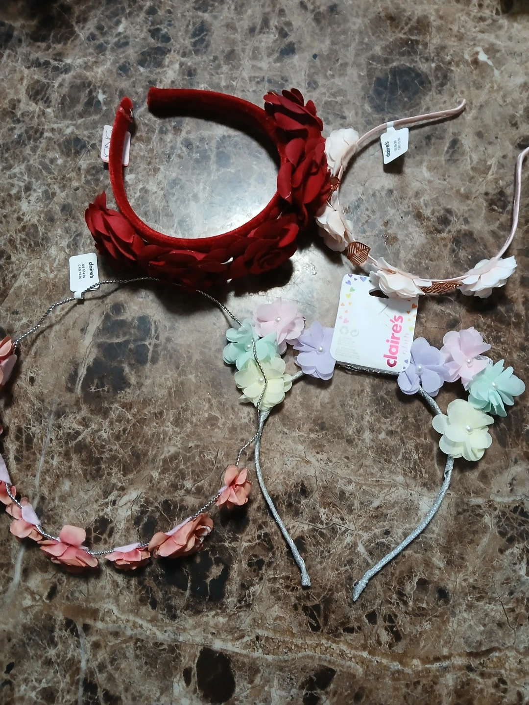 Selling a set of four Claire's flower headbands! They're all in great condition and perfect for adding a touch of floral fun to any outfit. Price is firm plz. Pick up midland and Danforth or 401 bay street or stc mall