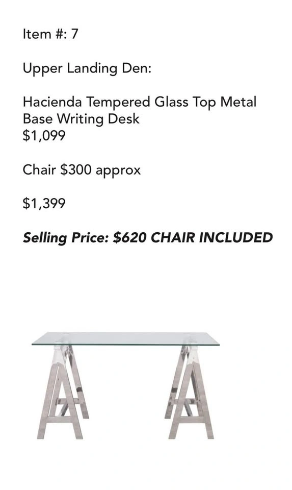 Tempered Glass Top Metal Base Desk and Chair 50% off!