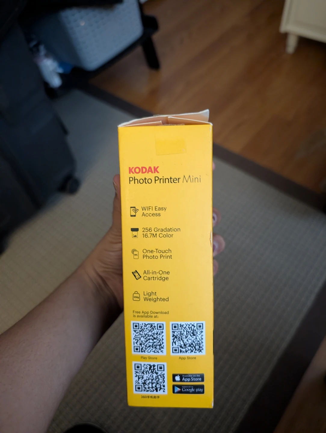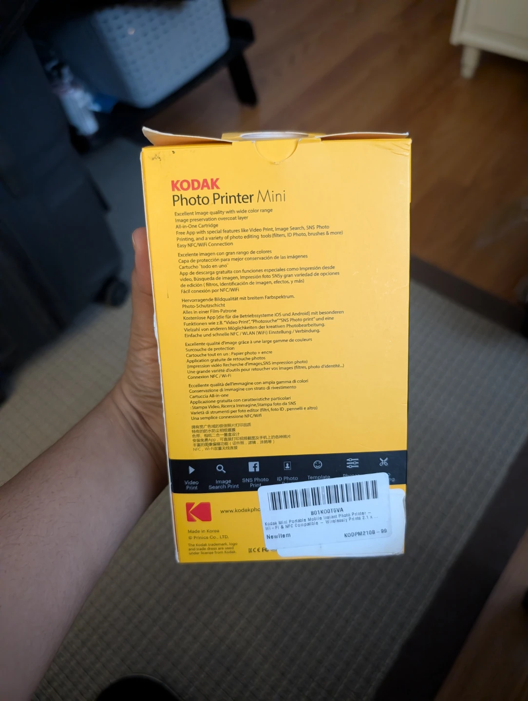 I'm selling a new Kodak Photo Printer Mini, perfect for printing photos directly from your smartphone with WiFi or NFC. It prints credit card size photos (54 x 86 mm) with excellent image quality using dye sublimation thermal transfer. The printer is light and comes with an all-in-one cartridge. Plus, the free app offers easy access and editing features!