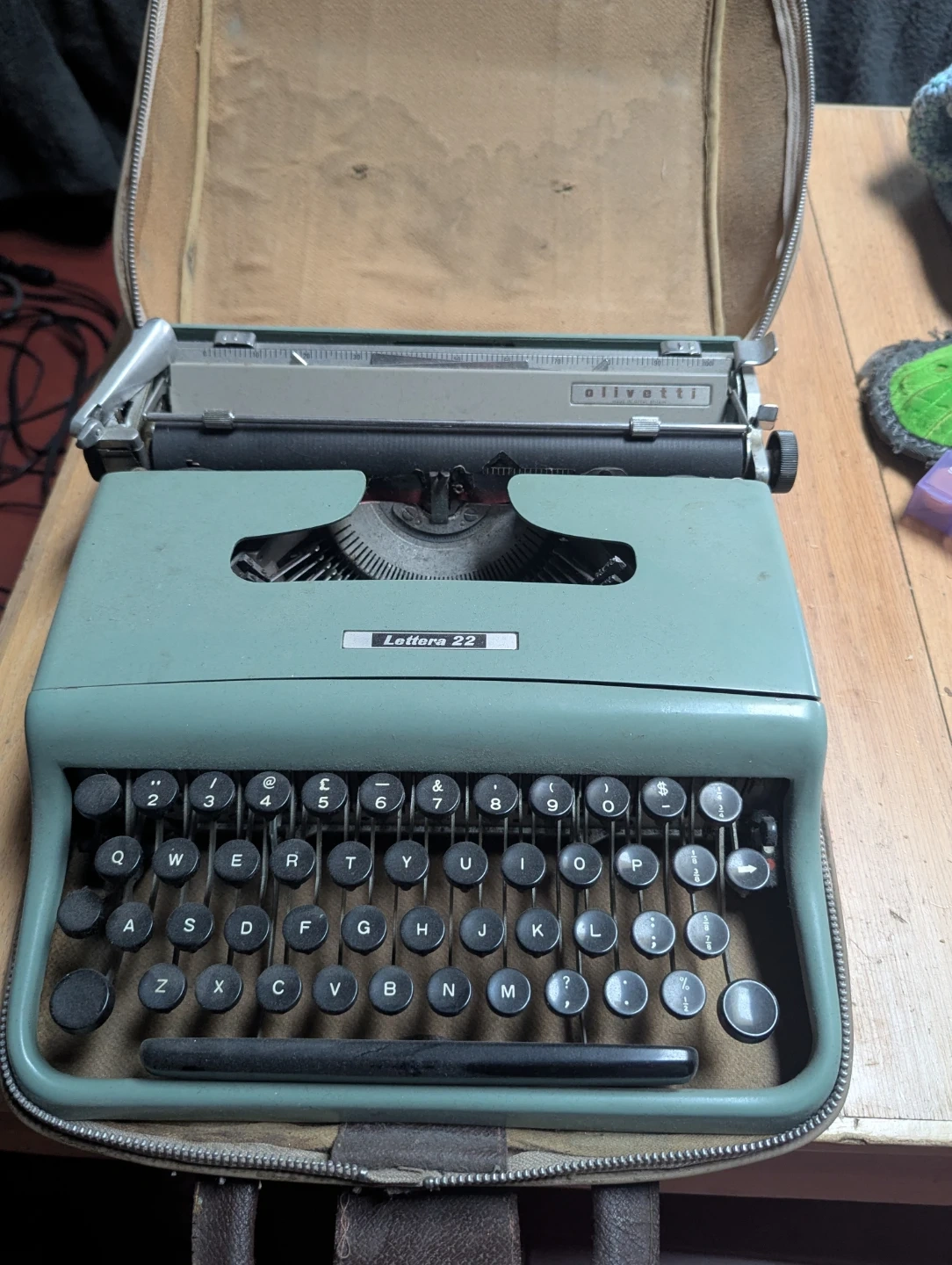 Selling a vintage Olivetti Lettera 22 typewriter! It's a beautiful light green colour and comes with its original carrying case. A great piece for collectors or anyone who loves the feel of a classic typewriter