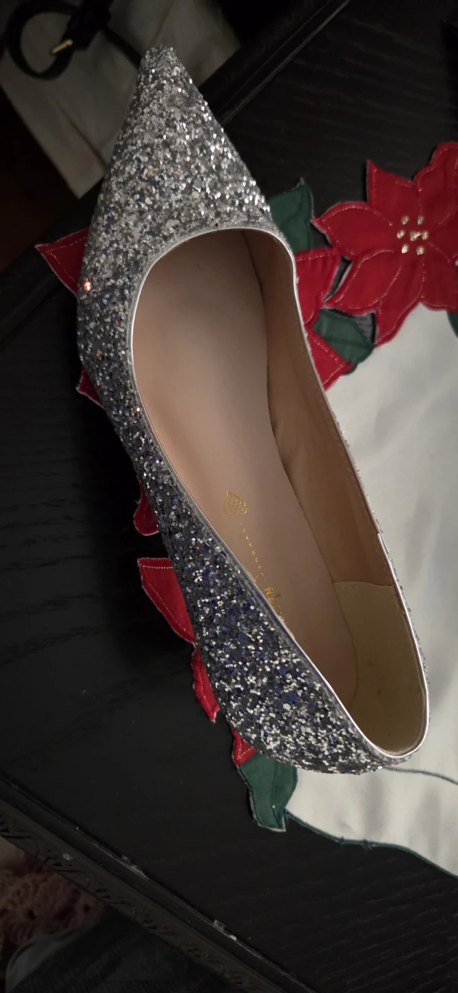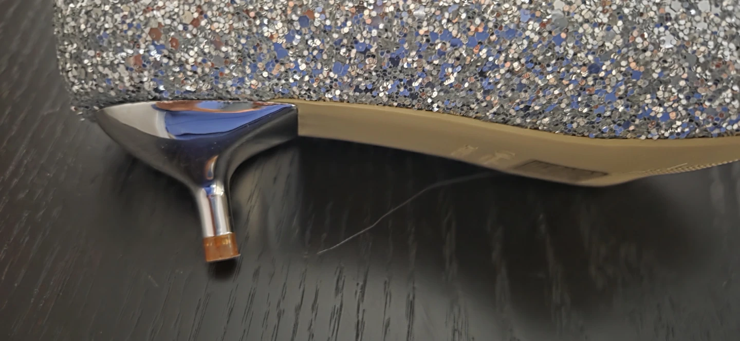 Selling a pair of low heels shoes in a dazzling silver glitter! They are size 7 Perfect for adding a bit of sparkle to your outfit on this sparkly season.