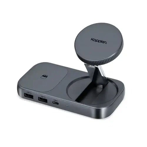 Foldable 3-in-1 Docking Station β Powers phones and earbuds while connecting to displays via 4K/60Hz HDMI. Features 15W wireless phone charging, 5W AirPods charging, folding magnetic design, USB-C & USB-A ports, and 10Gbps data transfer for workspace or travel.