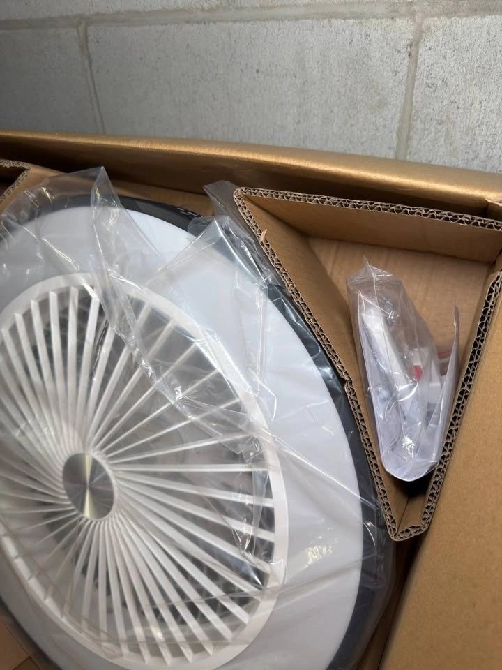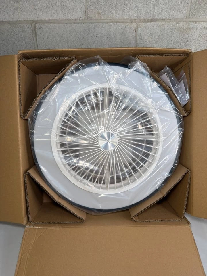 Enwinup 18.9in Ceiling Fan with Light – Modern indoor fan for bedrooms, kitchens, dining, and living rooms. Features adjustable light color (3000K–6000K), dimming, three wind speeds, memory function, and a 48×48×18 cm design with enclosed blades for safety.