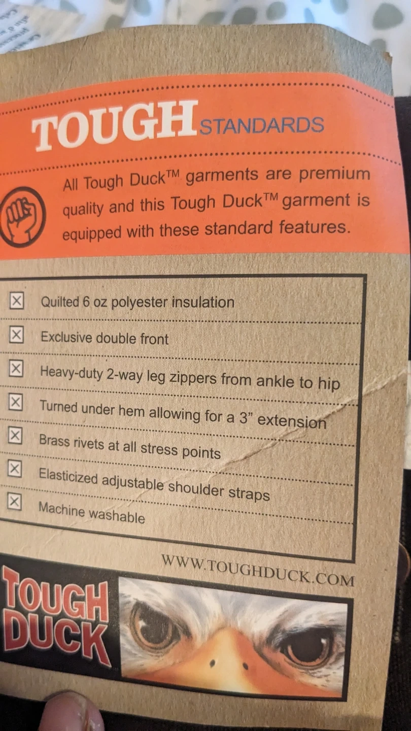Selling a Tough Duck lined overall in size M/M. It's a durable and warm option for outdoor work or activities. Made in Canada! Tags still on.