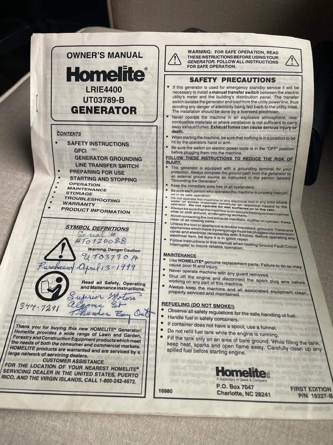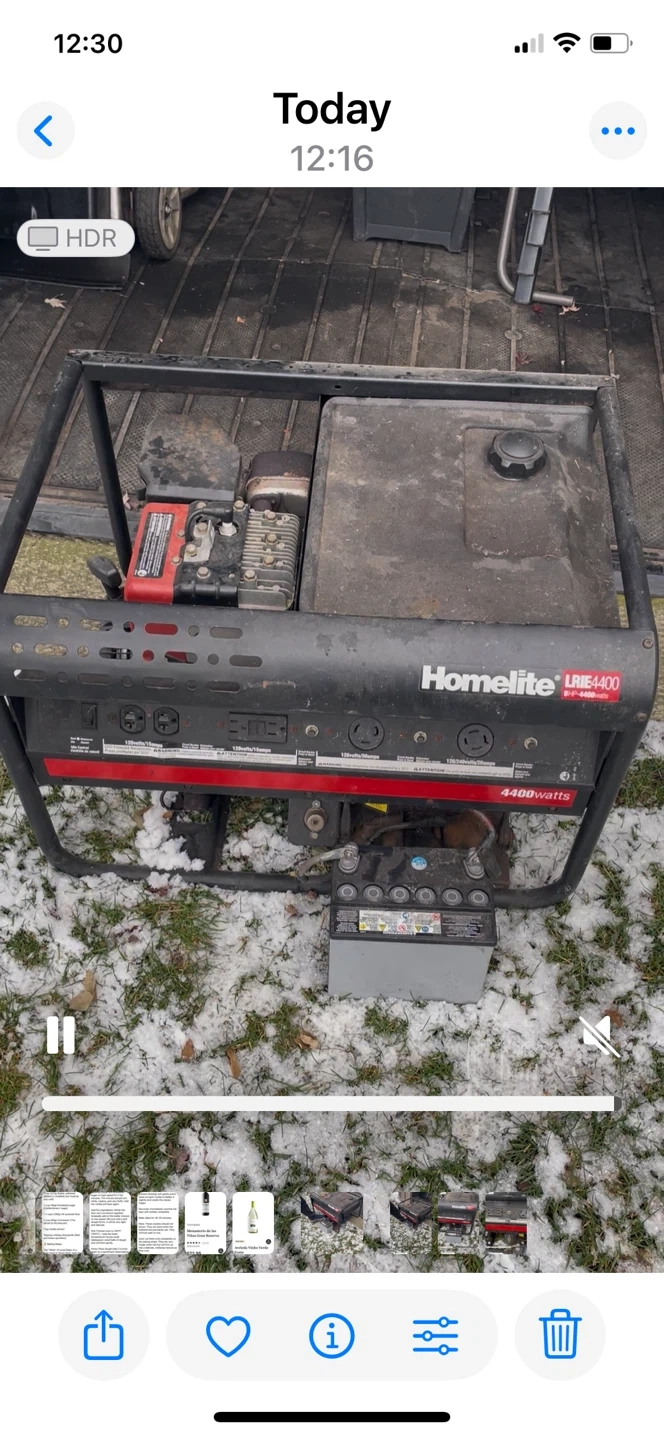 Selling a Homelite LRIE4400 generator, providing 4400 watts of power. It's a reliable unit for your power needs. Included is the owner's manual. Electric start and newer battery.