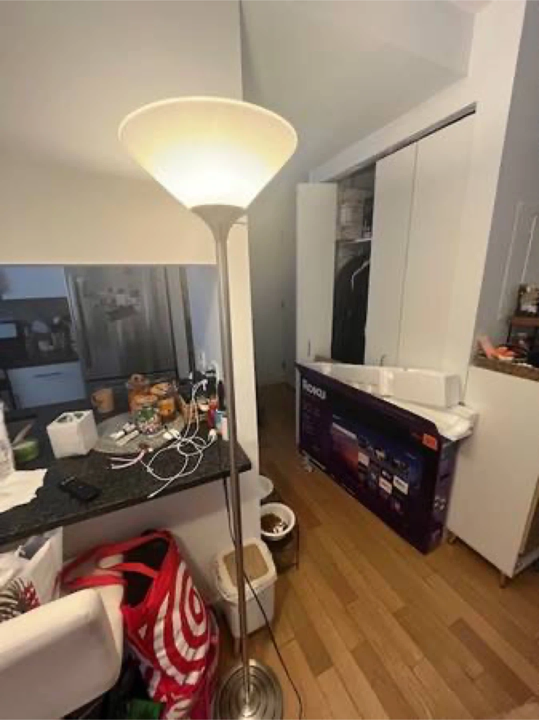 Selling a floor lamp in good condition! It has a simple, modern design that would look great in any room. Find in Amazon: