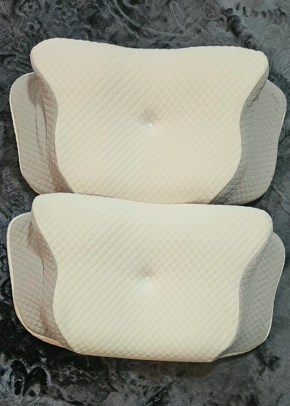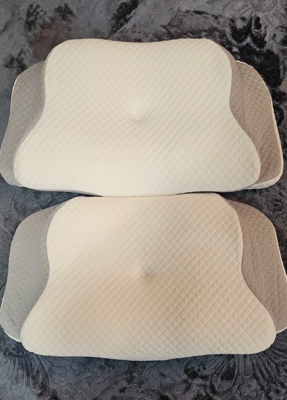 This is a Home Tex pillow designed for neck support. It's in great condition and ready to provide you with a comfortable night's sleep! The pillow is white with a quilted pattern.