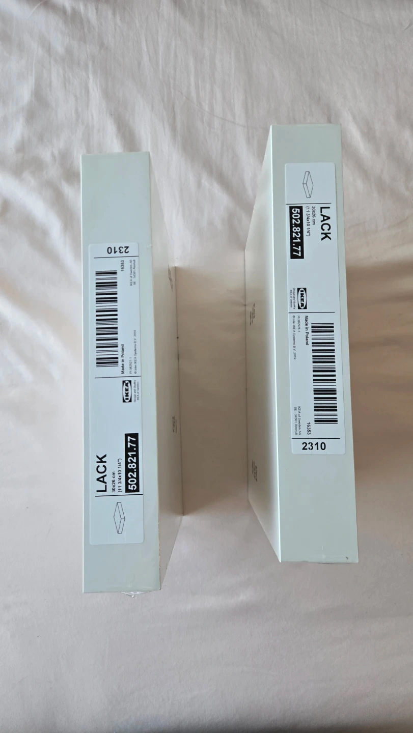 Selling two brand new IKEA Lack wall shelves, still in their original packaging! They measure 30x26 cm. Perfect for adding a touch of minimalist style to any room