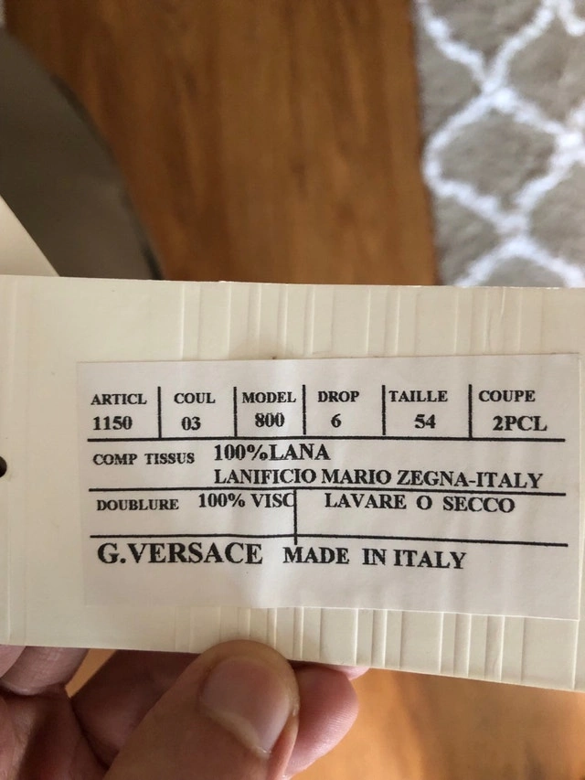 These are Versace Uomo classic trousers, crafted from 100% lana, size 54, made in Italy. The trousers are in new condition with tags. Specifications: * Brand: Versace Uomo * Material: 100% Lana (Wool) * Size: 54 * Made in Italy Length 40 Fawn/biege colour Width 36 If the ad is up, they're still available.