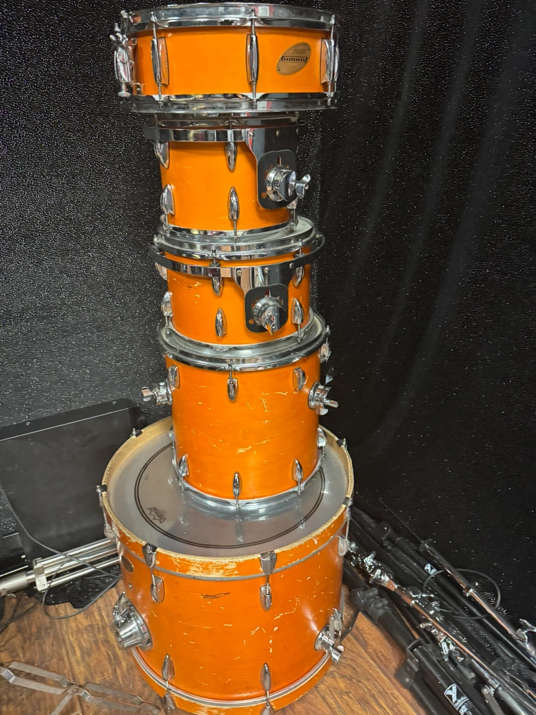 Selling a Ludwig drum set in a vibrant orange finish! It's a great set for anyone looking to upgrade or start playing. There are some signs of wear, but it's still in good working condition and sounds fantastic