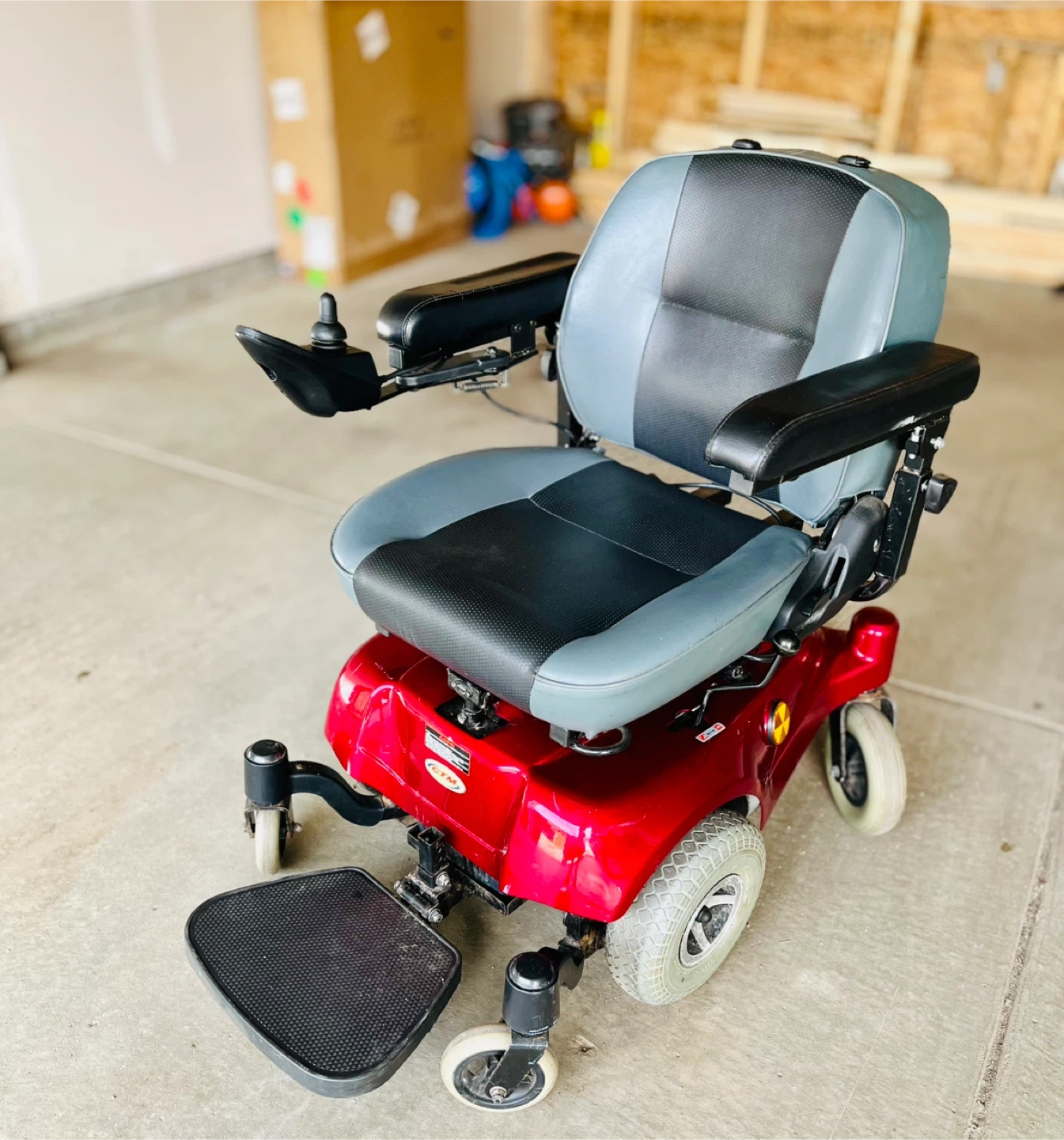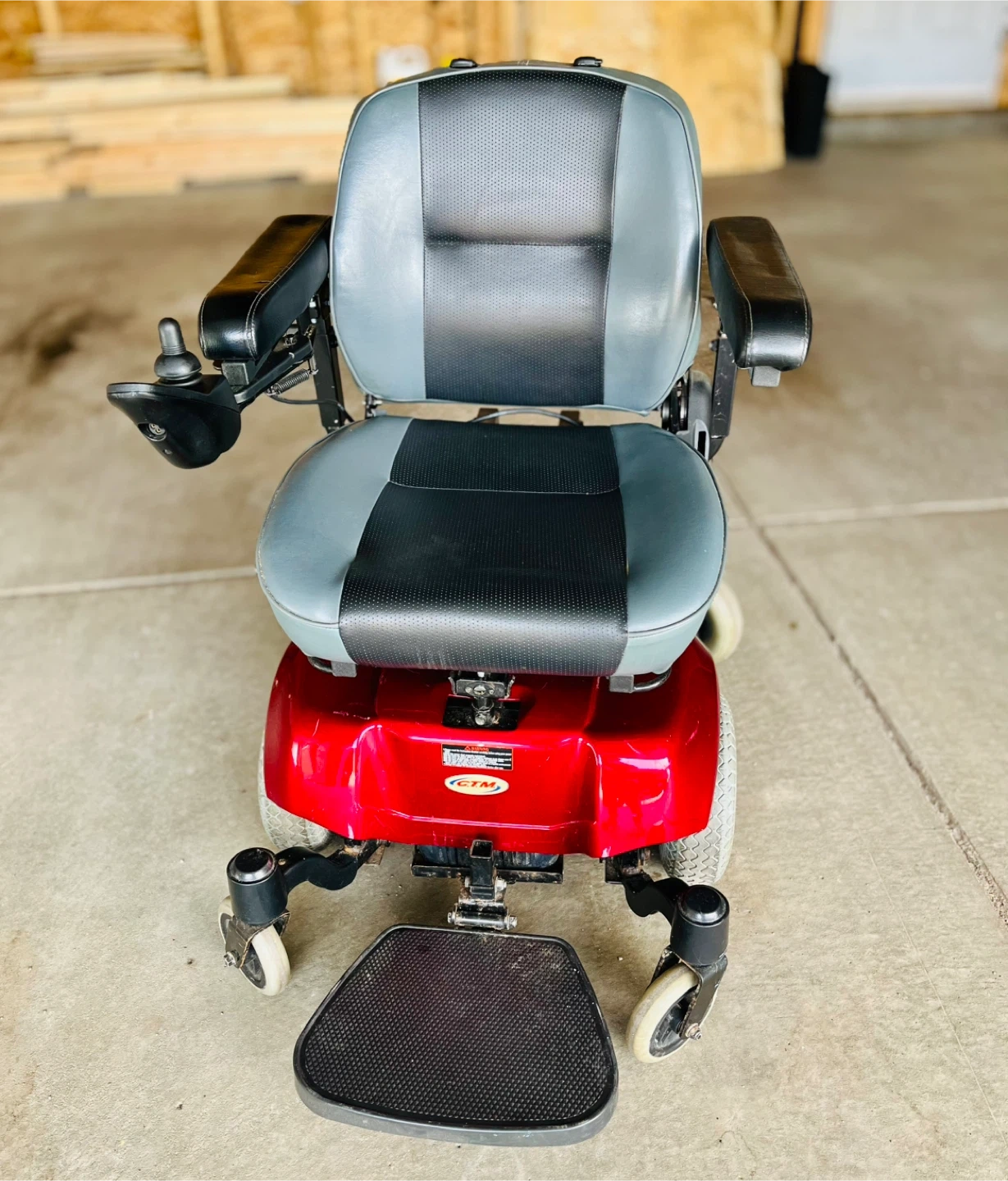 Selling a CTM HS-589 power wheelchair. It features a comfortable seat in grey and black, with a vibrant red base. Great for mobility and independence!