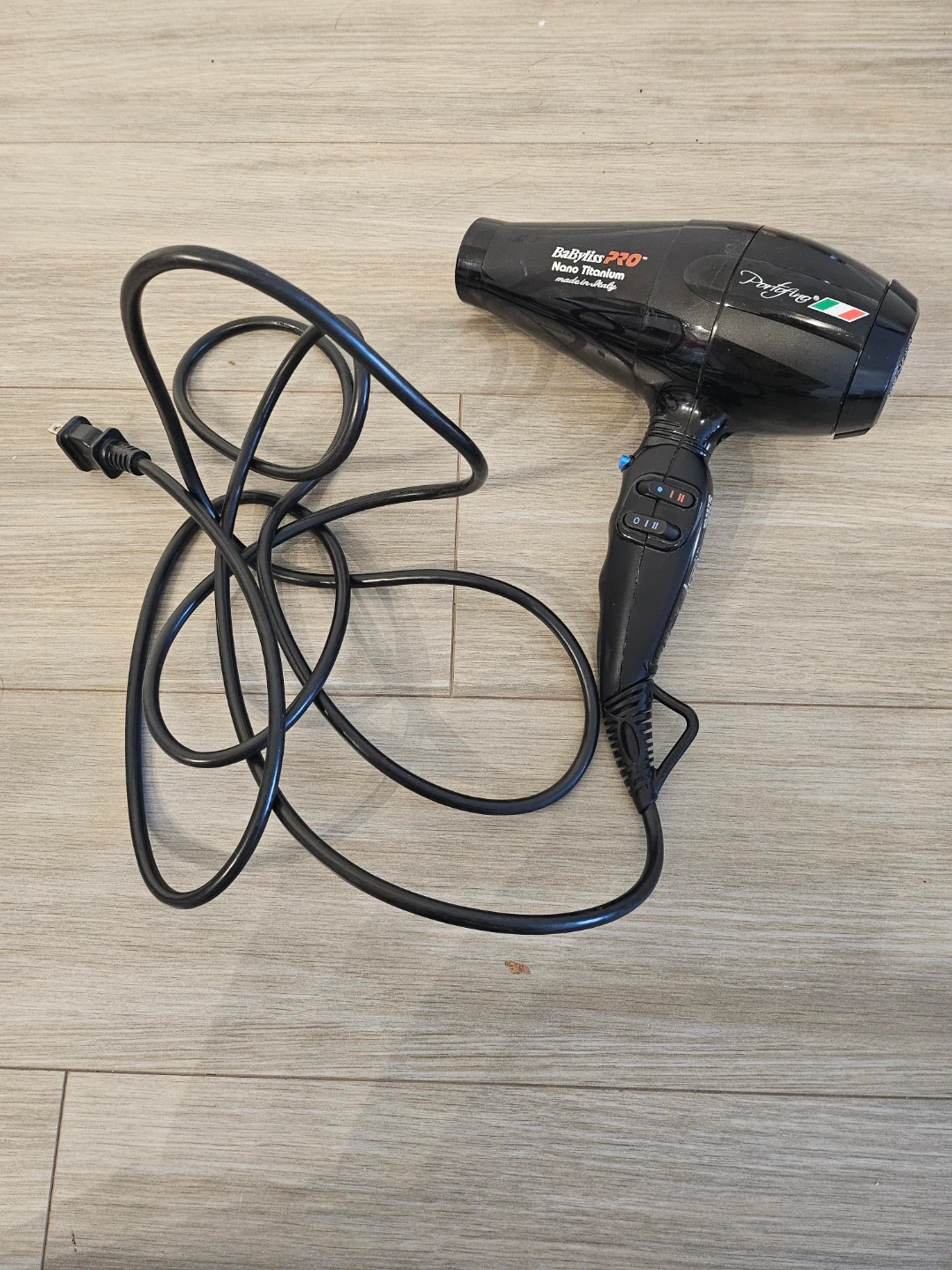 Selling a BabylissPRO Nano Titanium hair dryer. It's in great condition and ready for a new home! This hair dryer is known for its lightweight design and powerful performance, making it perfect for quick and efficient styling. The Nano Titanium technology helps to distribute heat evenly, reducing damage and leaving your hair smooth and shiny