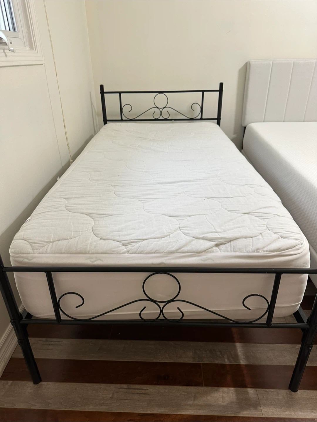 Selling a black metal bed frame that's in great condition! It's a twin size and would be perfect for a smaller room or a kid's bedroom. The simple design would match any decor.