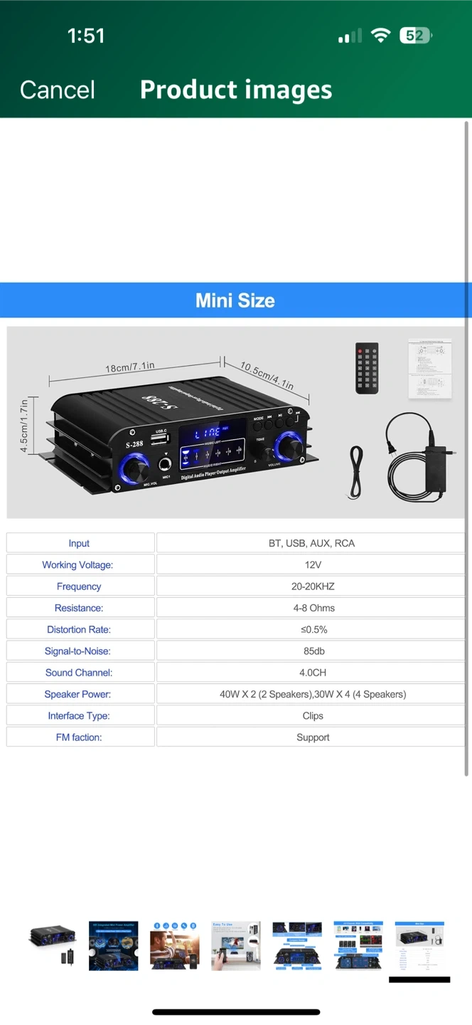 Selling a BEST S-288 Digital Audio Player Amplifier. It has 4.0 Channel and wide compatibility. It has input for BT, USB, AUX, and RCA.