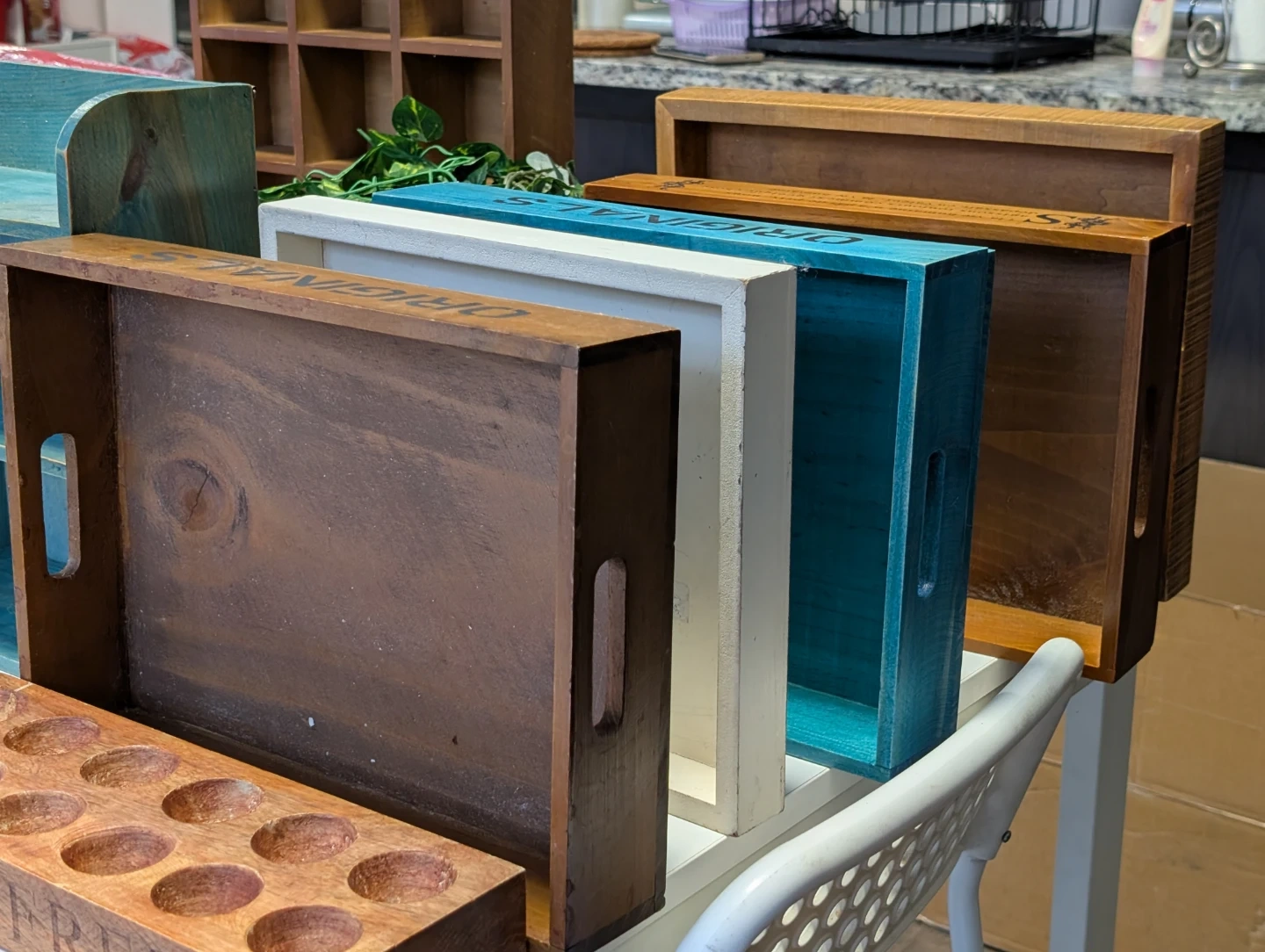 Selling a variety of wooden display shelves and decorative items! Great for adding a rustic touch to your home or for craft projects. Check out the photos for details on each piece