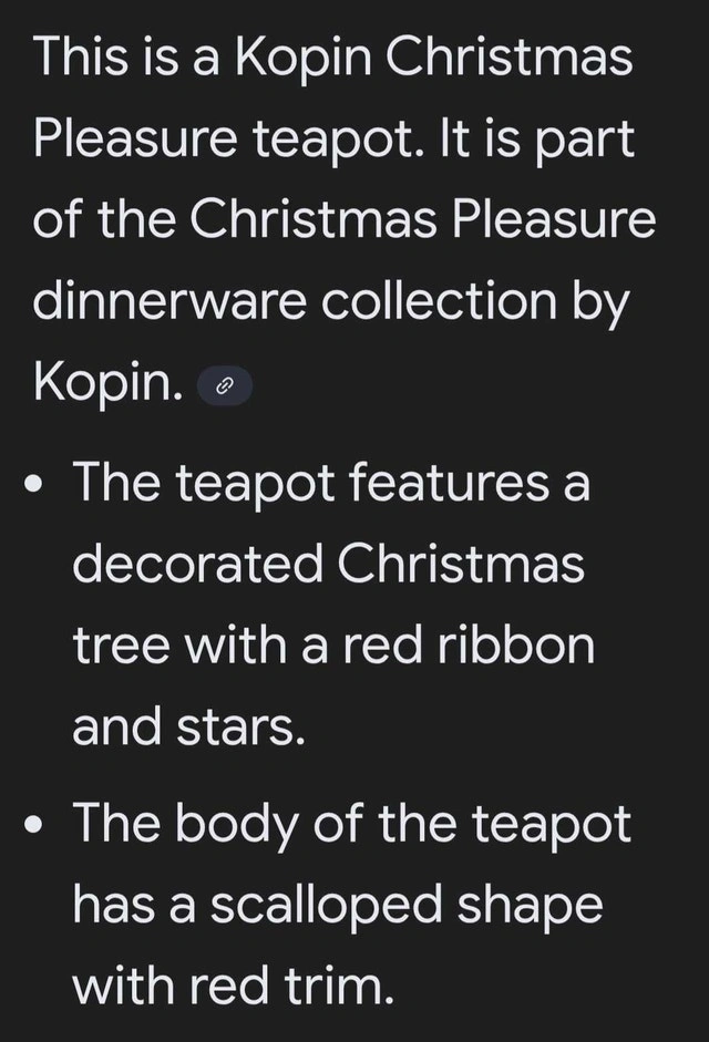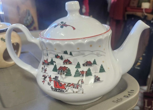 Add a touch of holiday cheer to your tea time with this festive Christmas teapot! This teapot features a charming Christmas tree design and a cozy winter village scene. It's in good condition, ready to brew up some heartwarming moments this season.