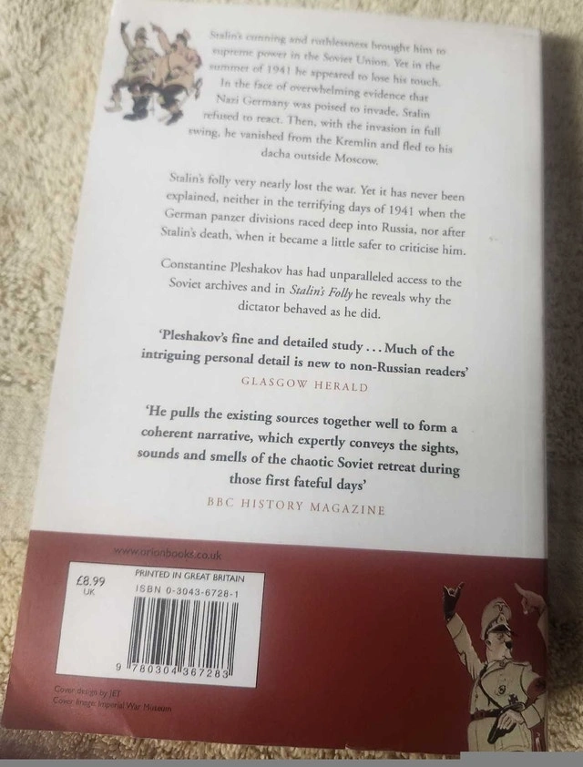 Dive into the tumultuous history of the German invasion of Russia with "Stalin's Folly" by Constantine Pleshakov, a gripping paperback that unveils the secret history of June 1941. This book is in good condition and offers a detailed look into one of the most pivotal moments of World War II.