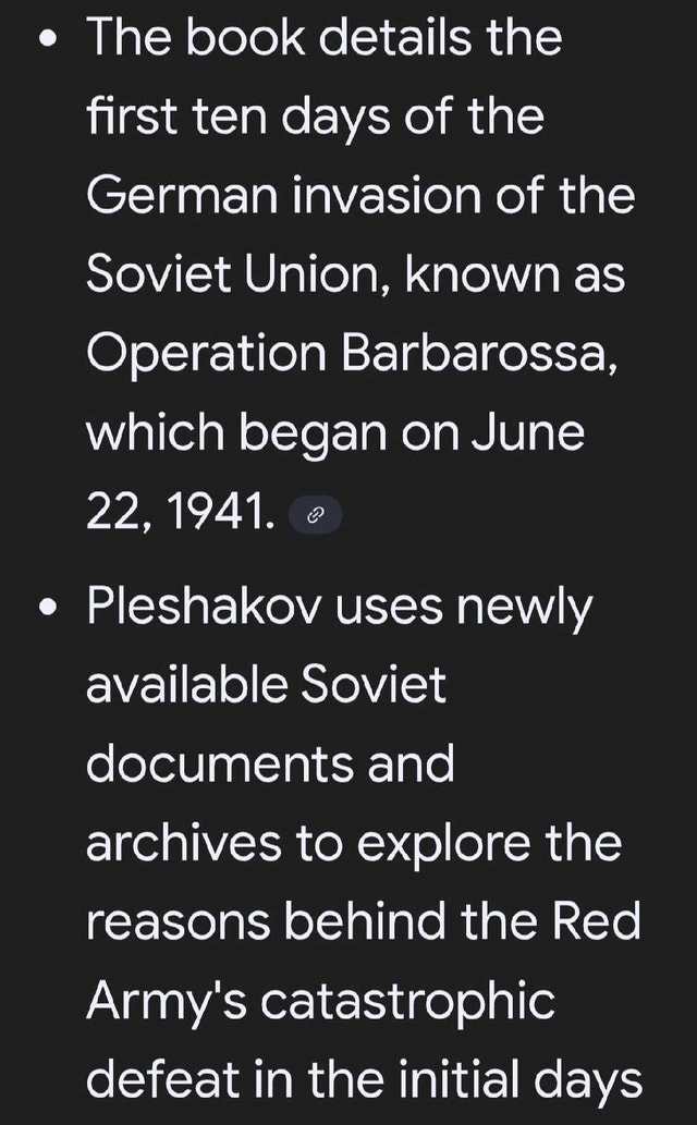 * Pleshakov uses newly available Soviet documents and archives to explore the reasons behind the Red Army's catastrophic defeat in the initial days.