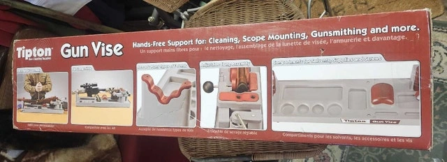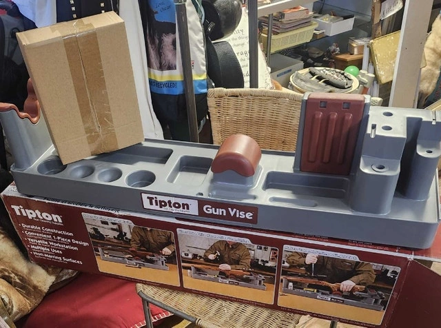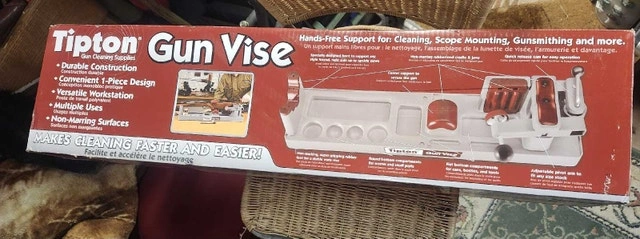 I'm selling a new Tipton Gun Vise, a must-have for any gun enthusiast! This durable and convenient workstation makes cleaning, scope mounting, and gunsmithing tasks easier and more efficient. Never been use. Key features include its durable construction, convenient one-piece design, and non-marring surfaces. Looking at similar listings, I've priced it fairly for its condition and functionality. Don't miss out on this handy tool to keep your firearms in top shape. If the ad is up, the vise is available!