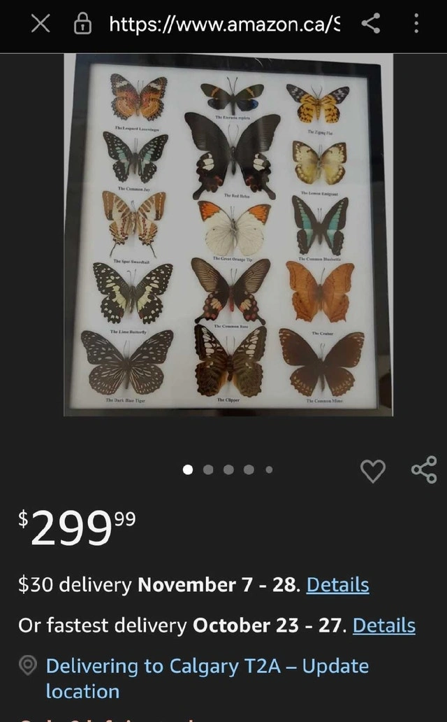 Add a touch of natural beauty to your home with this framed butterfly collection, showcasing a variety of species. The frame measures approximately 24" x 16", making it a striking piece for any wall. This item is used, but the butterflies are still vibrant and well-preserved under glass. Imagine it catching the light and sparking conversation among your guests. It's a unique piece that adds a touch of whimsy to any room! If the ad is up, the item is available!