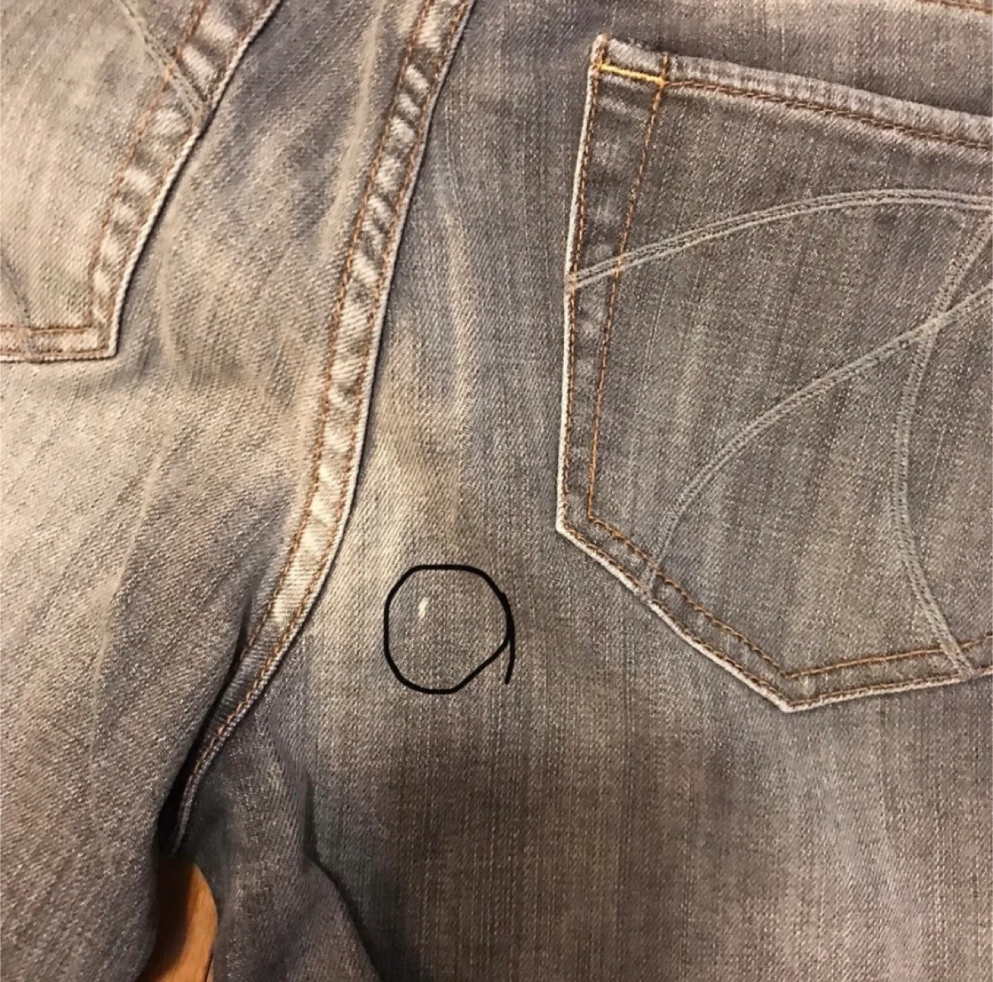 **There is a spot on the back pocket. See picture.