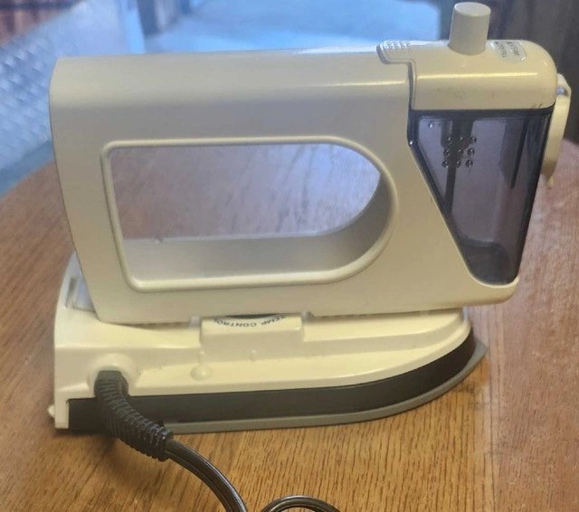 This is a used Sanyo Steam/Dry Iron, model A 270N, in good working condition, perfect for travel or small ironing jobs. Its compact design and dual voltage capability make it an ideal companion for international trips. The iron heats up quickly and provides consistent steam for efficient wrinkle removal. This reliable Sanyo iron is ready to go wherever you need it, ensuring you always look your best, no matter where you are.