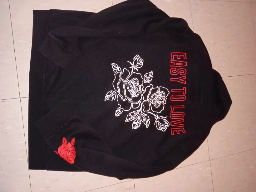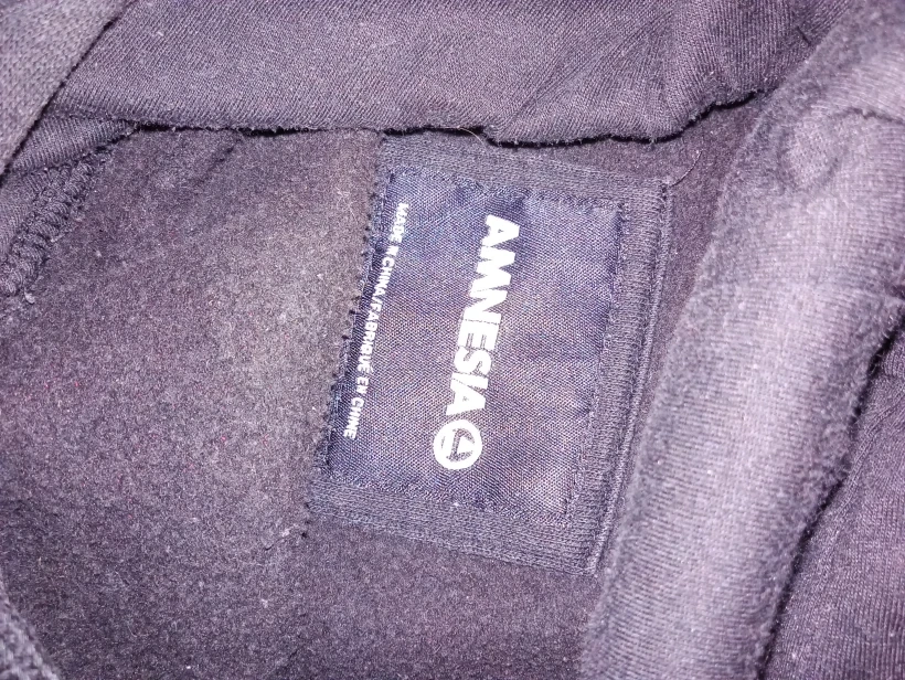 Selling a black Amnesia hoodie with a floral design. The hoodie features the words "Hard to Forget" on the front and "Easy to Love" on the back. It's in great condition and ready for a new owner!