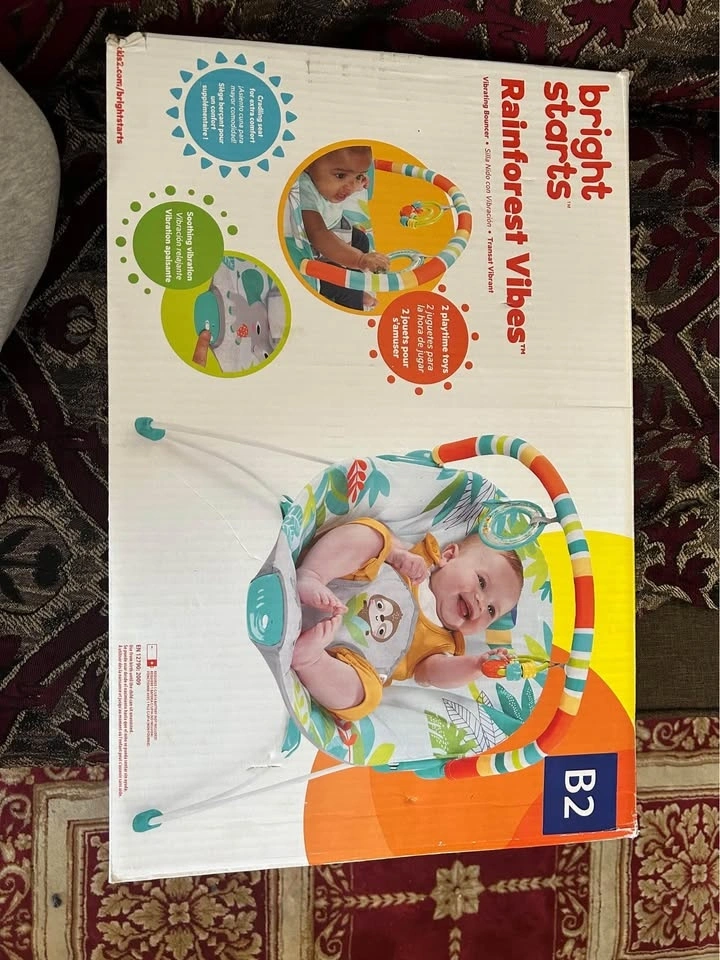 Bright starts rainforest vibes Baby vibrating bouncer with music and vibration