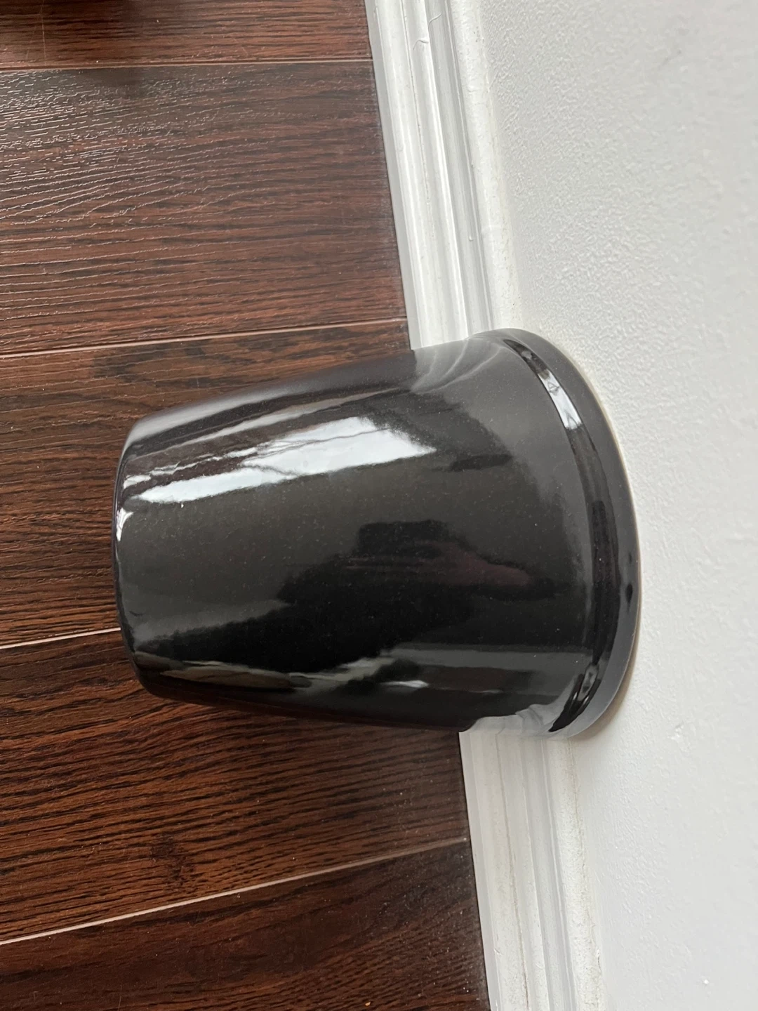 Black (truffle) color. Used for a few years, overall in great condition except for signs of use at the bottom (please see photos). The shape with uneven height allows to hold shorter utensils in front, longer at the bottom.