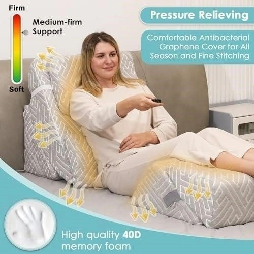 This bed wedge pillow set combines premium memory foam on top and firm foam for the base, providing comfort and support while sleeping, sitting, reading, or working. All pillow covers are made of Graphene fabric suitable for all seasons and can be removed and washed.