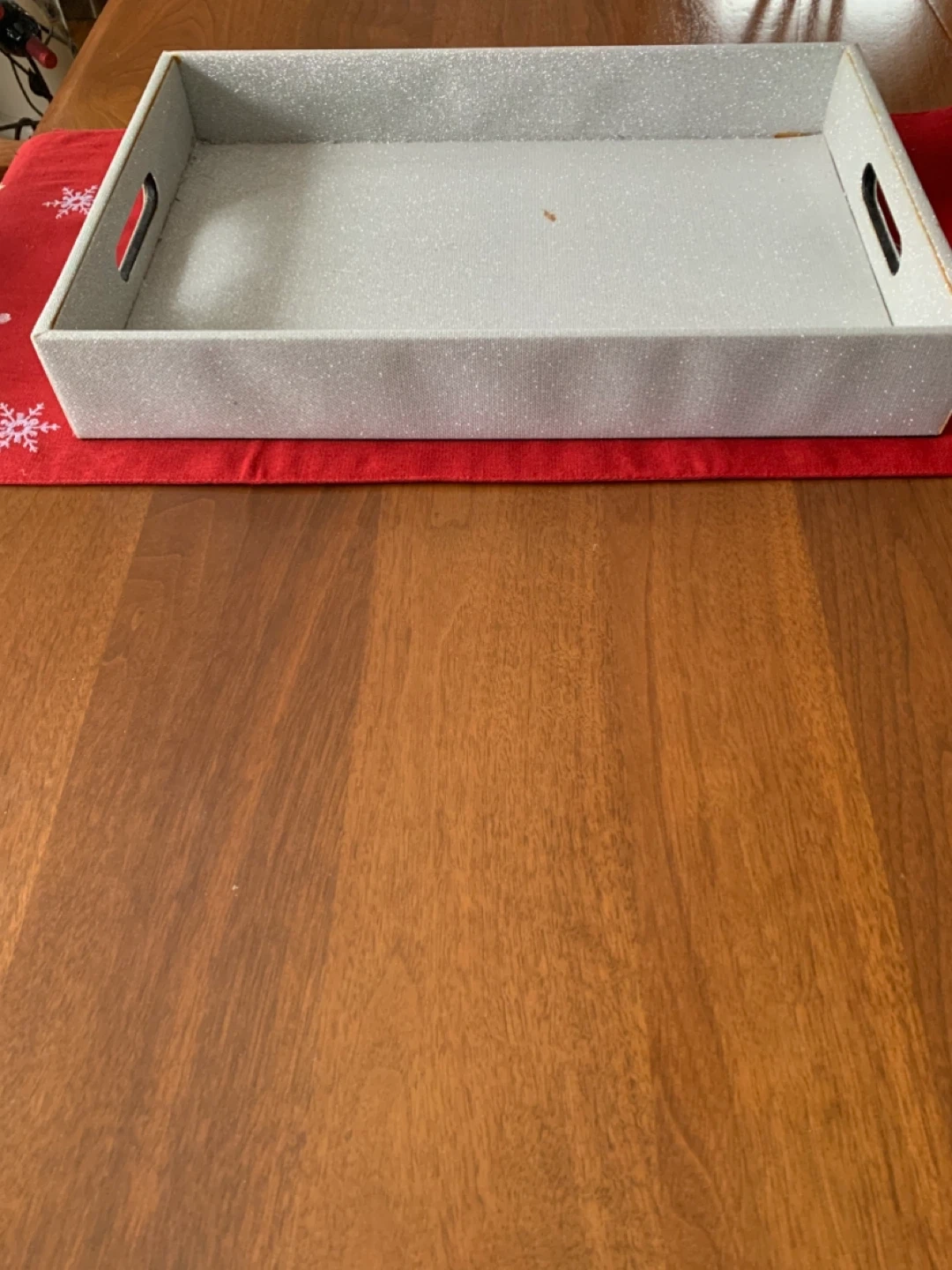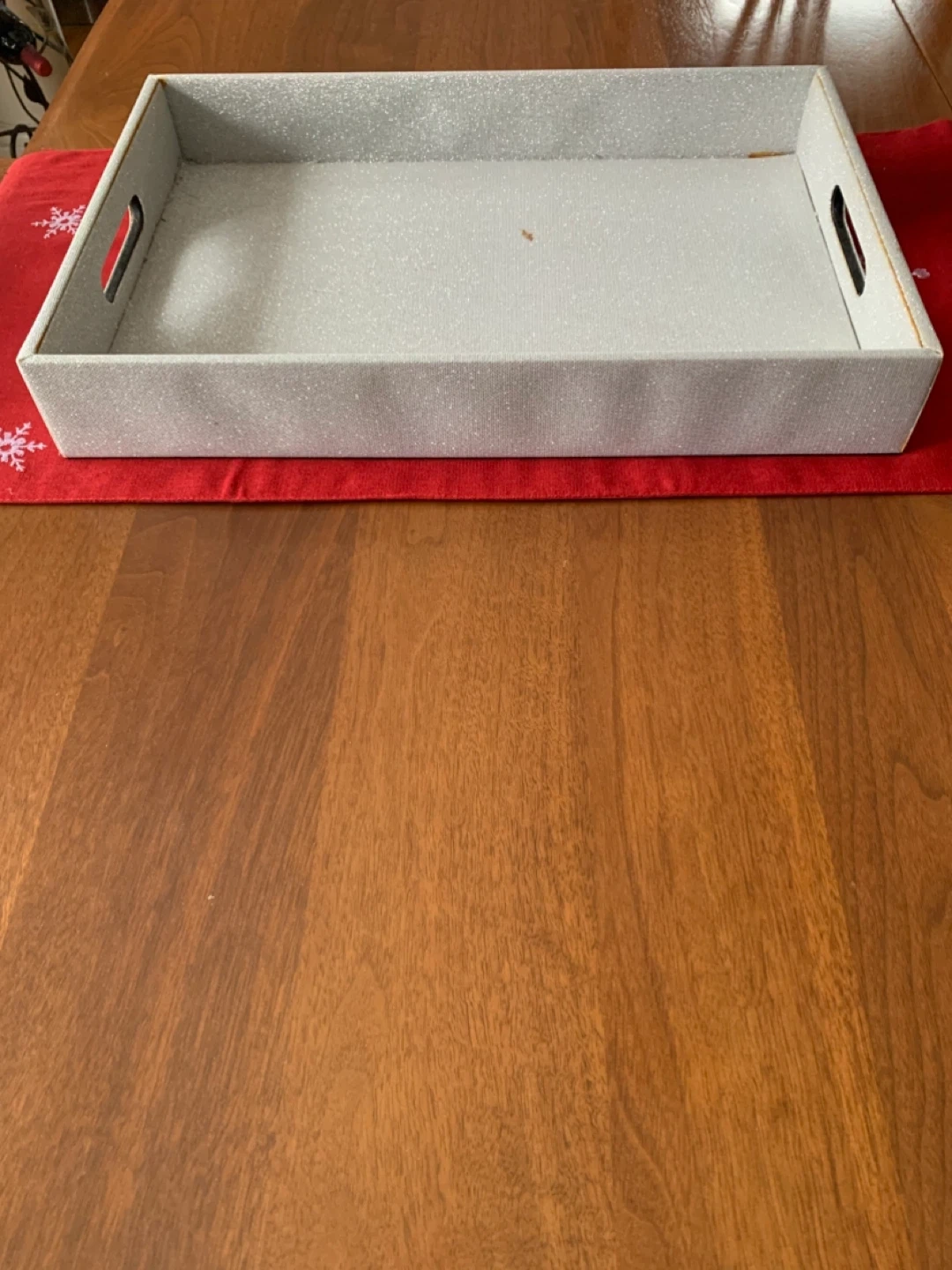 Add a touch of sparkle to your home decor with this rectangular silver tray, perfect for serving or display, it is in good condition.