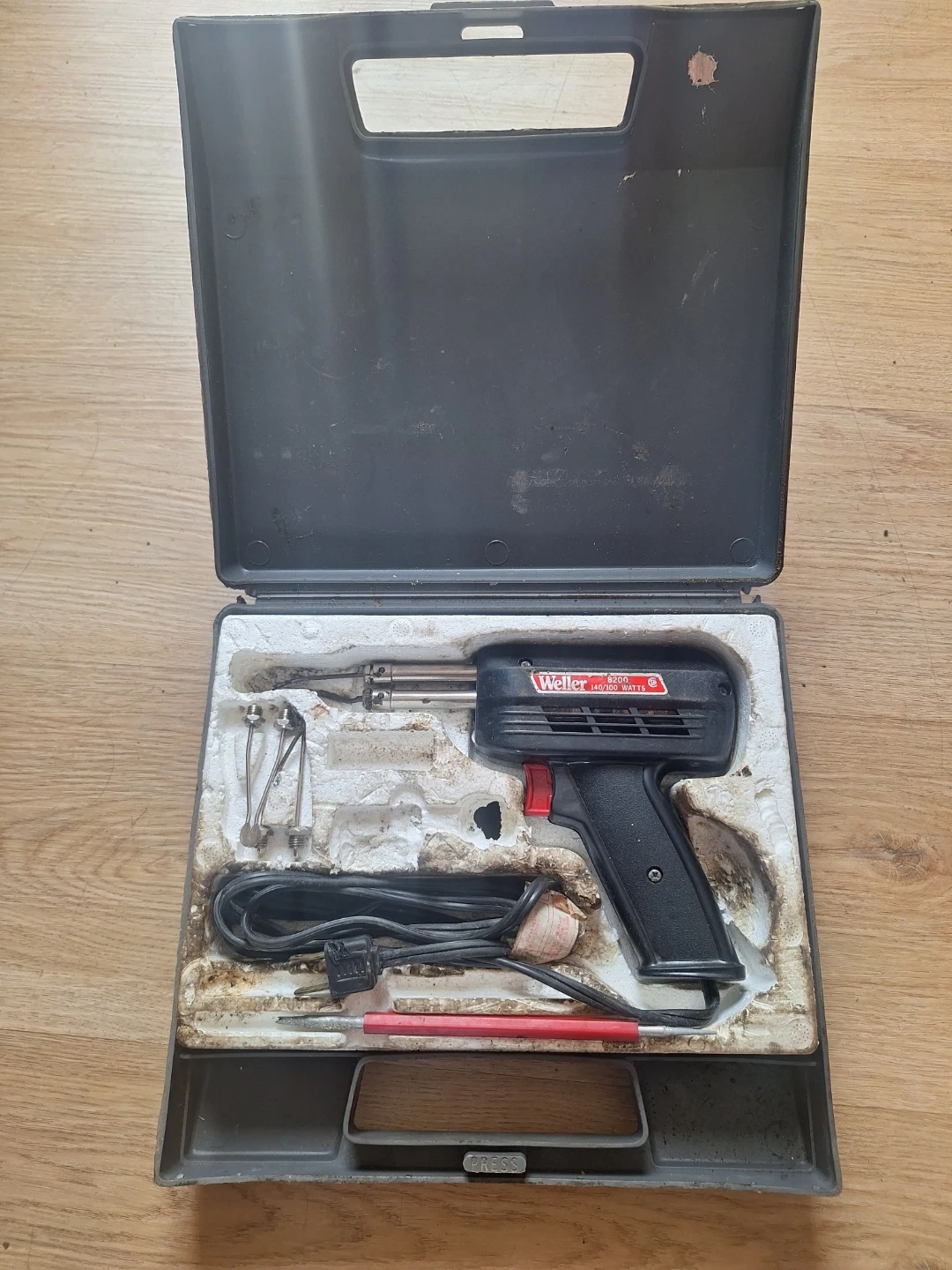 Weller Soldering Gun All items are BEST REASONSABLE OFFER and PICKUP ONLY as we don't drive. Cleaning out a 40ft. storage unit due to a death in the family. A wide variety of items such as a 1950 Dodge Fargo (needs restoration), hockey goalie gear (senior), toolbox, Snap-On Pro Scan, stove, wood stove, soldering iron, car parts furniture, 3D 60” TV, camera with accessories, sink, 22" TV, antique hand water pump, lamp, recliner whale bones, bench grinder, wood lathe and many more items. Check out my other ads for individually listed items but still sorting and getting pics so feel free to message to come by to check other stuff out as well.