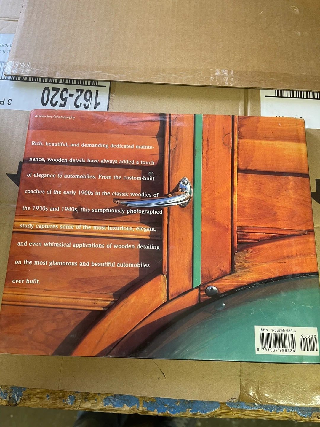 Selling a hardcover book called 'Auto Focus: Wood Details' by Rob Leicester Wagner. It's a beautiful book showcasing luxurious and elegant wooden detailing on automobiles from the early 1900s to the 1940s. A great addition for any automotive or photography enthusiast! Cash only