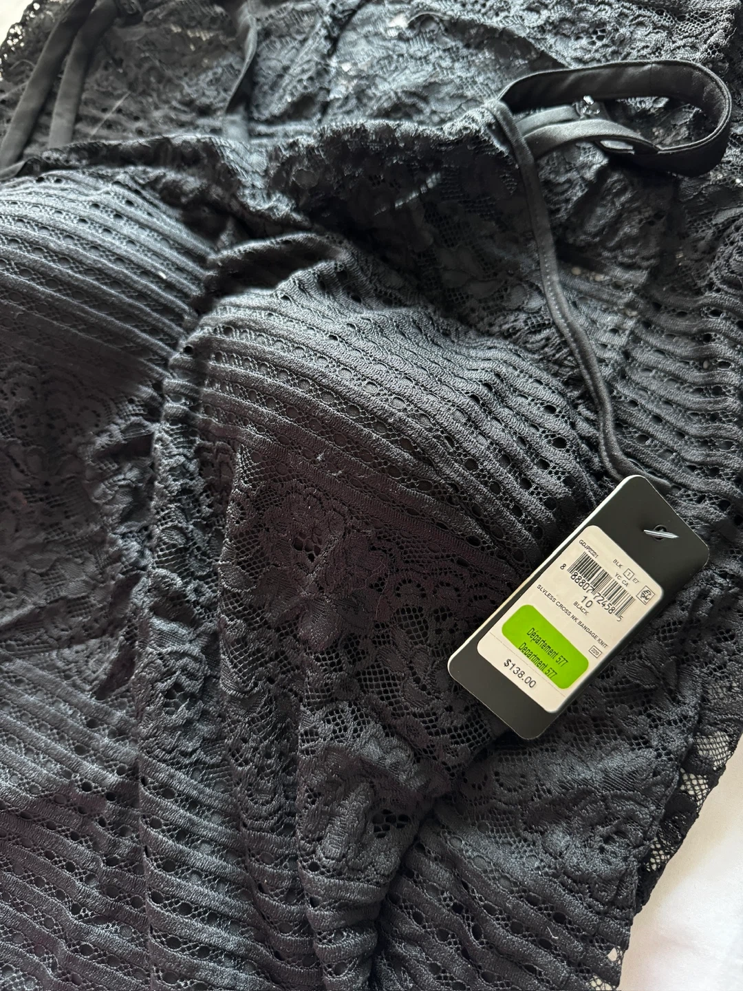 This is a beautiful black lace dress from Guess, size 10. The dress has a delicate lace pattern and a flattering silhouette. It’s perfect for a night out or a special occasion! Originally bought for $138.00