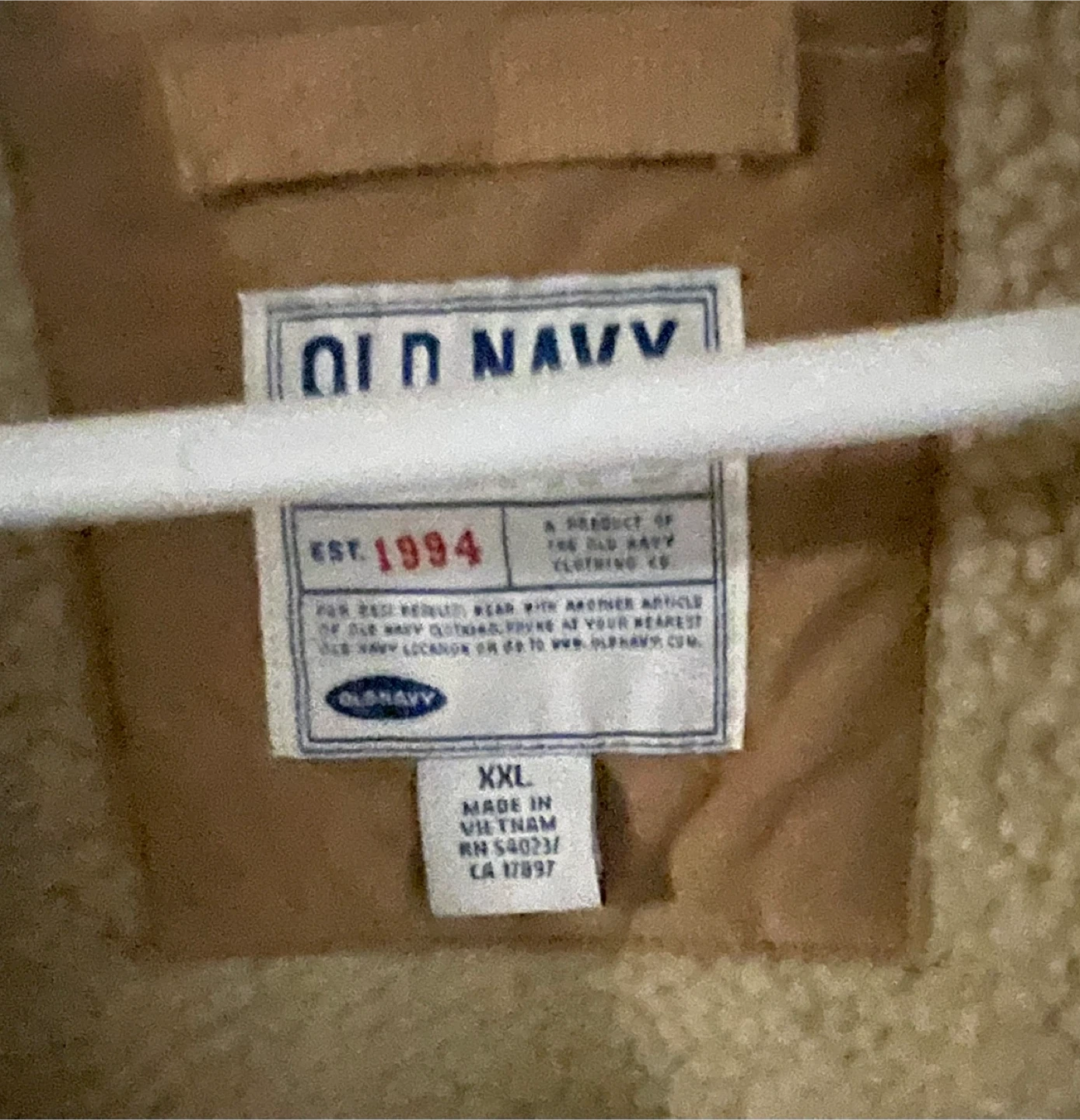 Selling a cozy Old Navy jacket in size XXL! It's a tan colour and fully lined with sherpa for extra warmth. Perfect for chilly days!