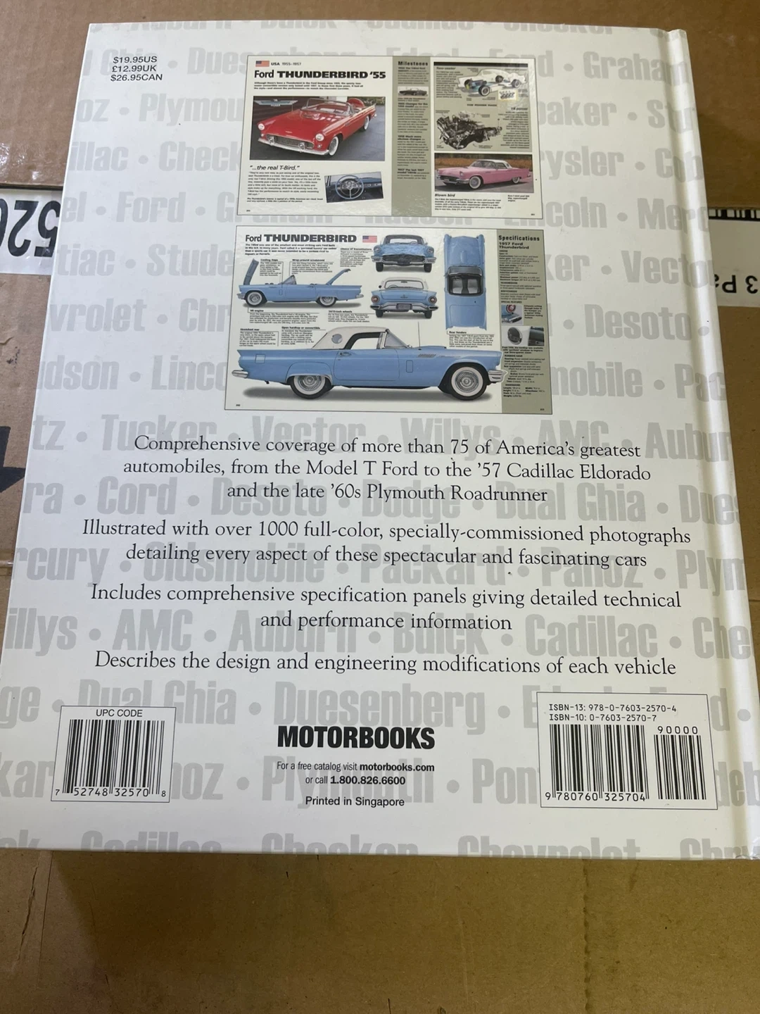 Selling a copy of 'Ultimate American Cars' from the Five-View Series. This book offers comprehensive coverage of over 75 of America's greatest automobiles, from the Model T Ford to the '57 Cadillac Eldorado and the late '60s Plymouth Roadrunner. It's illustrated with over 1000 full-color photographs and includes comprehensive specification panels detailing technical aspects and design modifications of each vehicle. Cash only