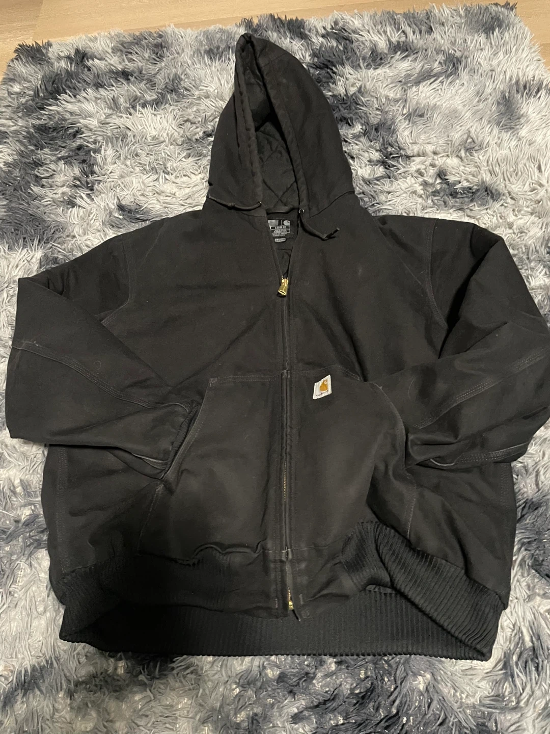 Selling a Carhartt black hoodie jacket in size XL. It's in great condition only wore a few times fits to big on me.The model number is OJ0140-M. (SEND OFFERS) #cleanout
