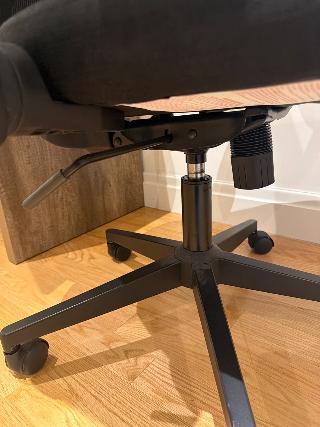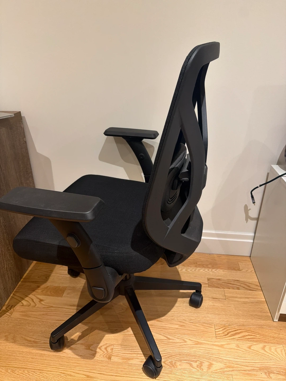 Selling a comfortable black office chair! It's in great shape and ready for a new workspace. The chair features a mesh back for breathability and adjustable armrests for customized support. It's a great addition to any home office or study area