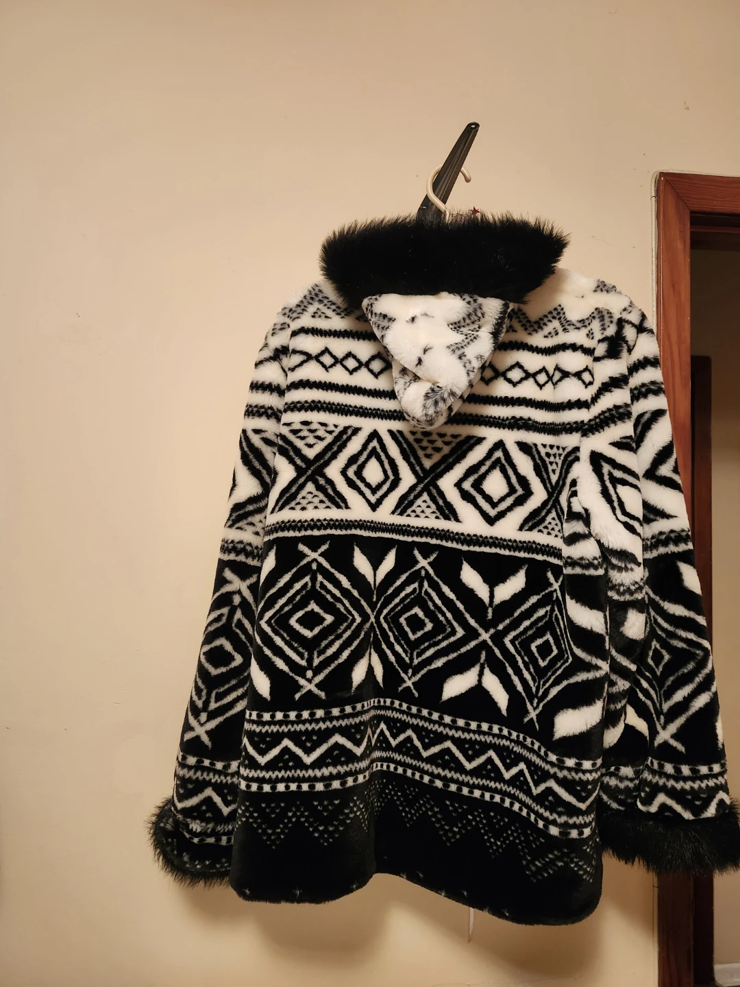 Cozy up in this Capital LINDOR Petite faux fur coat! It's a size XL/TG and features a stylish black and white geometric pattern. Perfect for adding a touch of warmth and flair to your outfit!