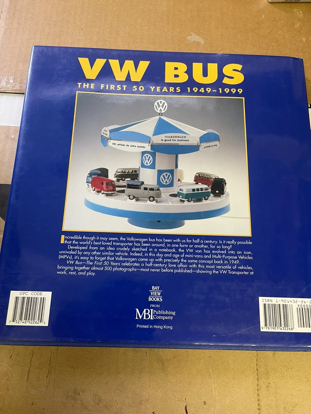 Selling a book titled "VW Bus: The First 50 Years 1949-1999" by Keith Seume with Michael Steinke. It's a celebration of the iconic VW Transporter with almost 500 photographs, many never before published. Cash only