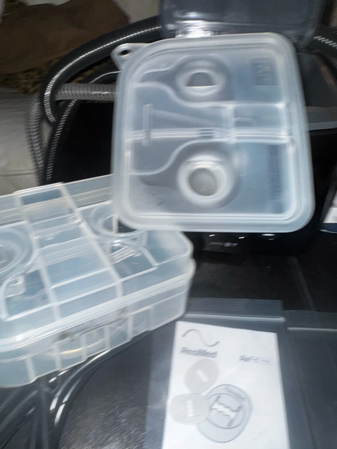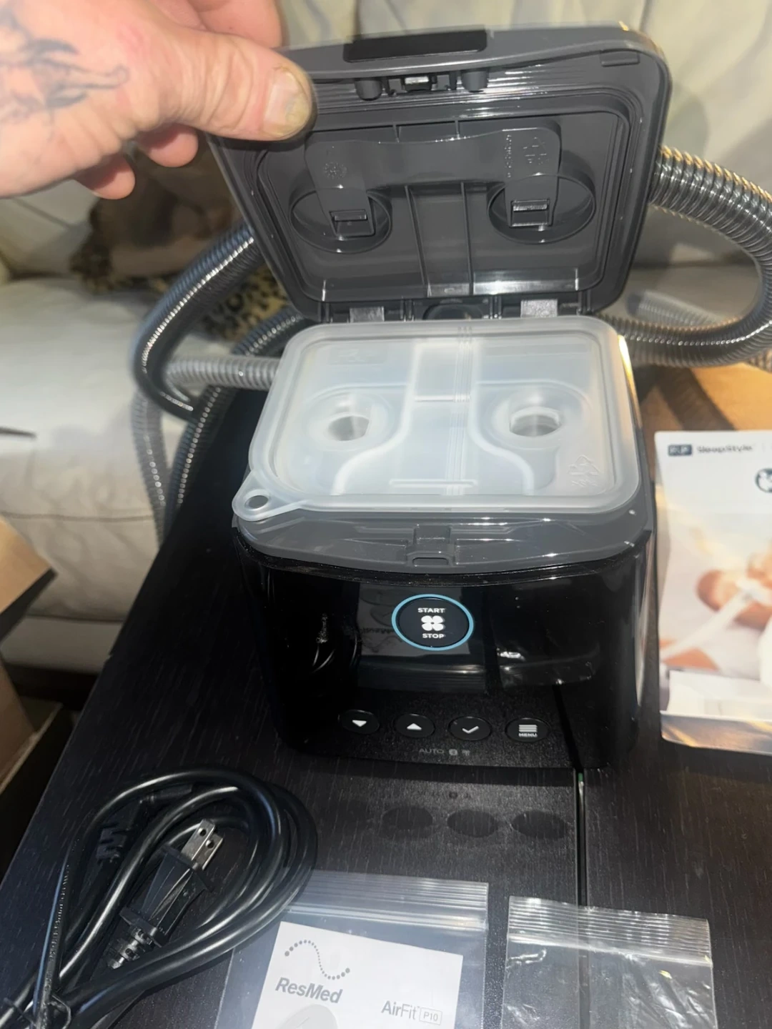 Selling a ResMed F&P SleepStyle CPAP machine. It comes with the ResMed AirFit P10 mask and all the pictured components. Great for sleep apnea therapy! Opened but never used