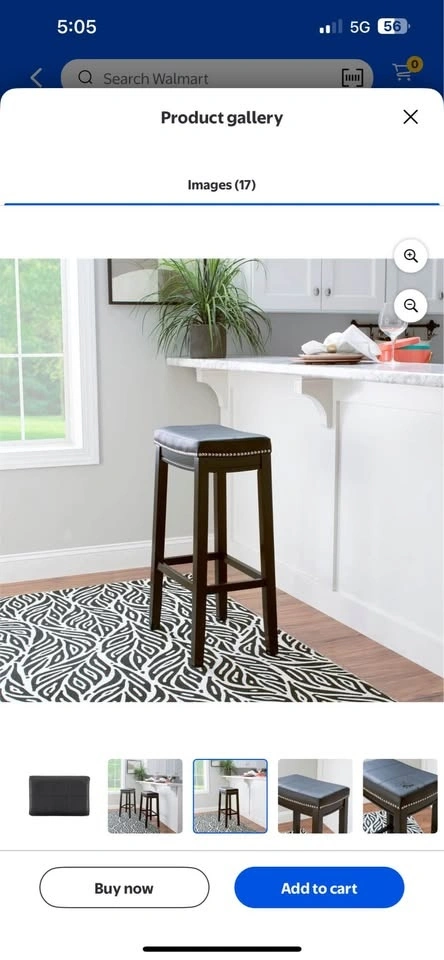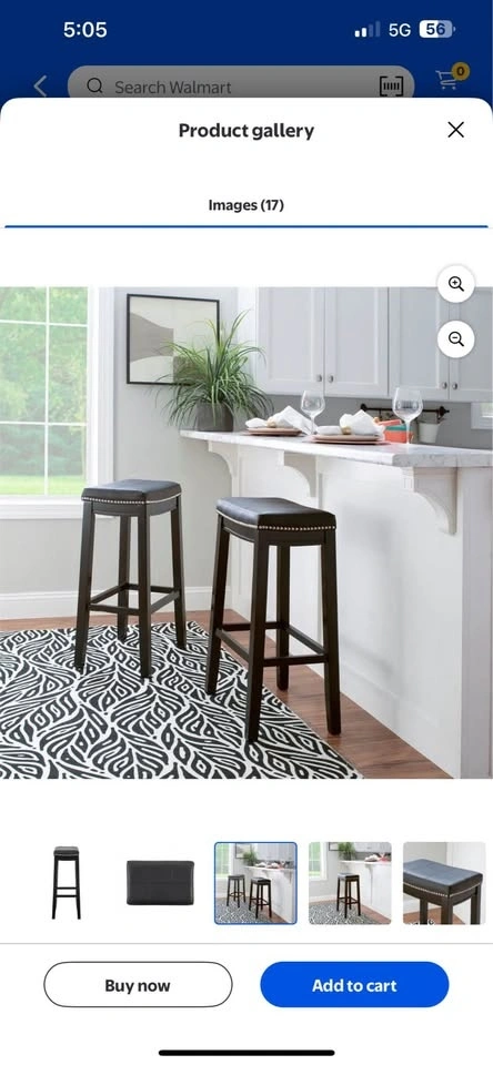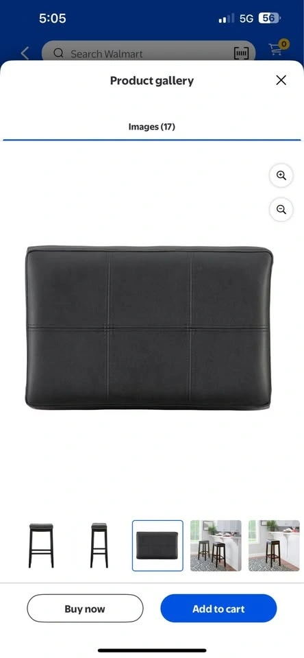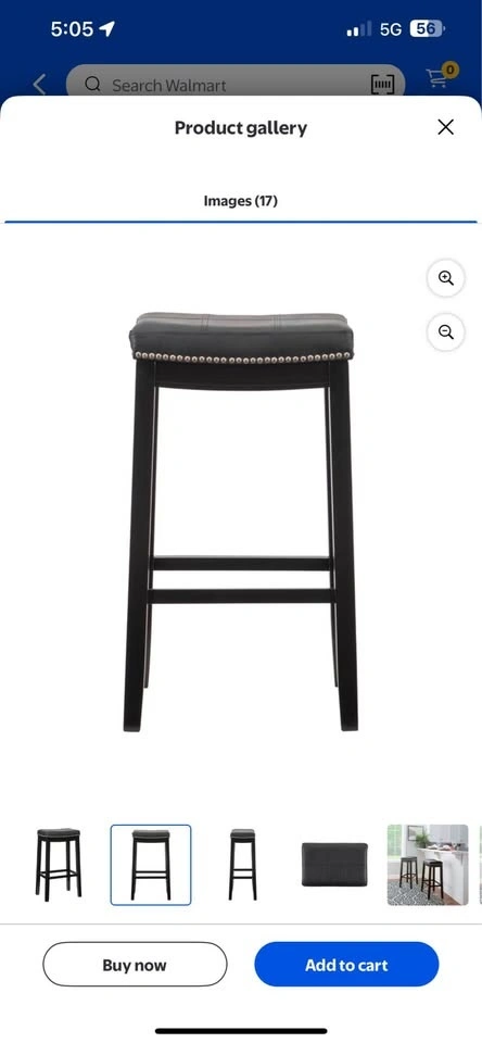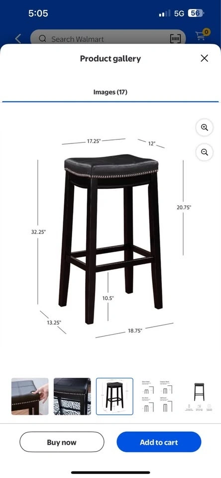 This black bar stool will add stylish seating to any counter or high top table in your home. The sturdy wood frame has a black finish accented by a black faux leather seat. Silver nail head trim and double needle accent stitching adds durability to the padded top for an eye catching detail. 32.25" seat height. 275 pound weight limit.