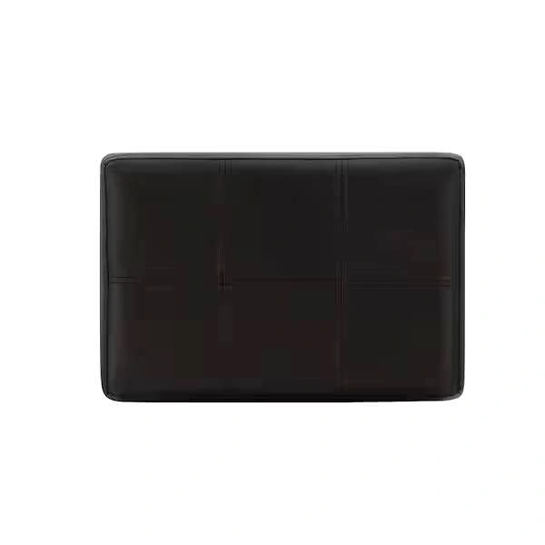 A generously padded black faux leather seat offers both comfort and easy maintenance