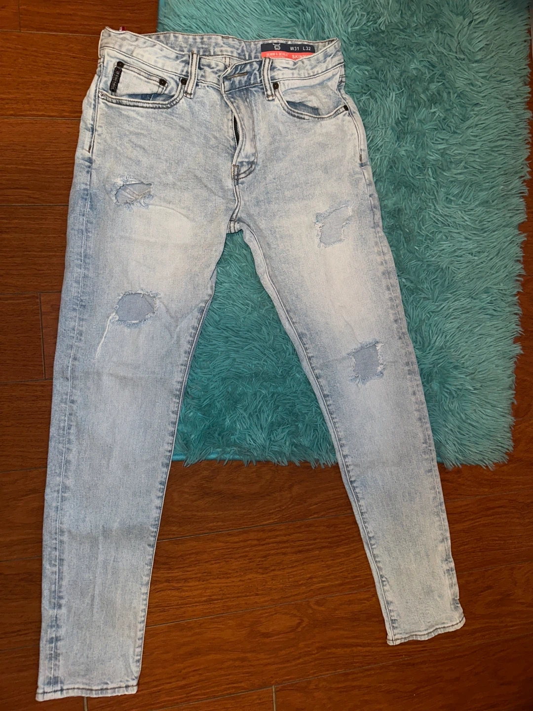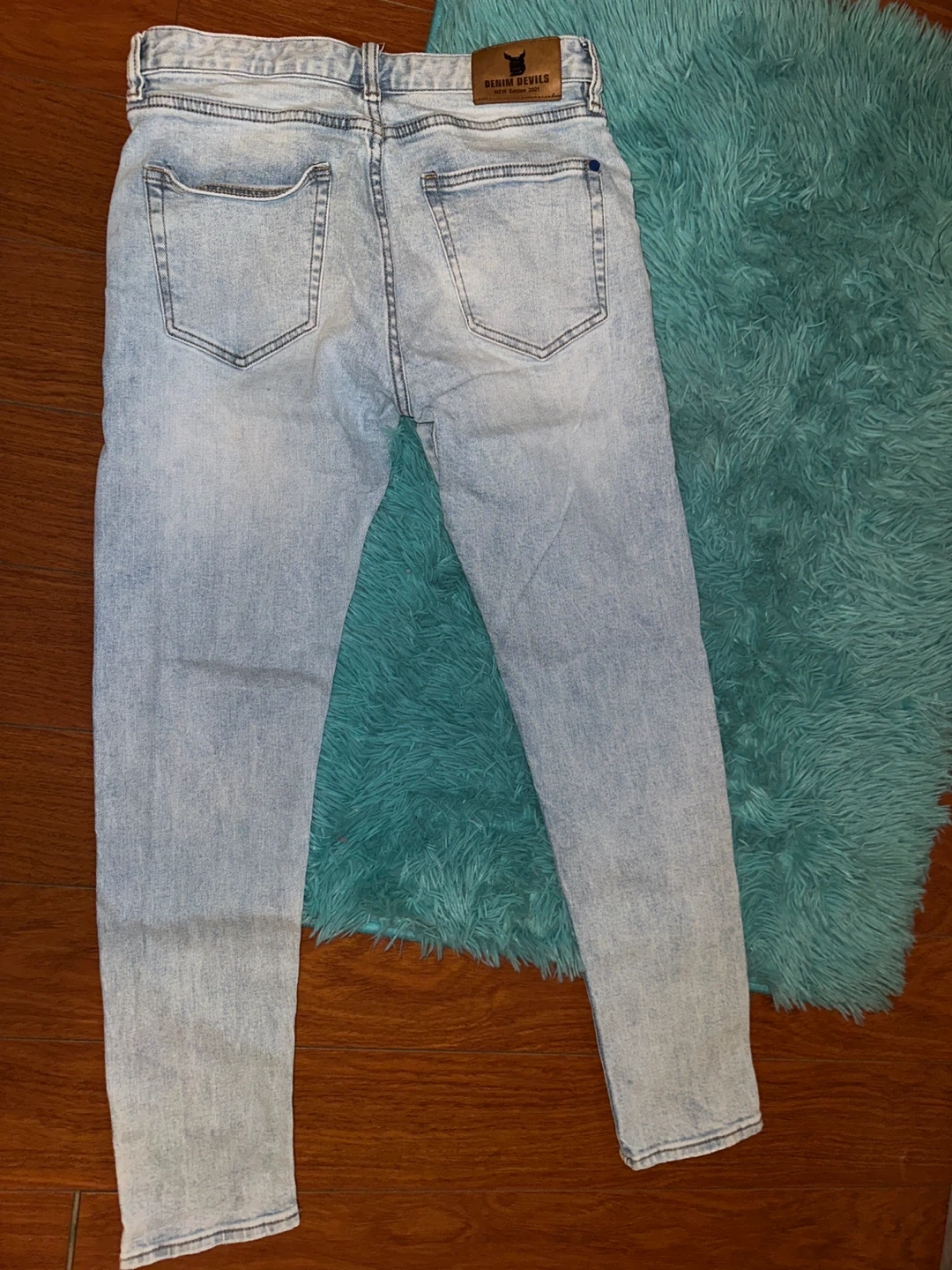 Selling a pair of Denim & Devils skinny jeans in size W31 L32. They have a light wash and some distressed detailing for a cool, casual look