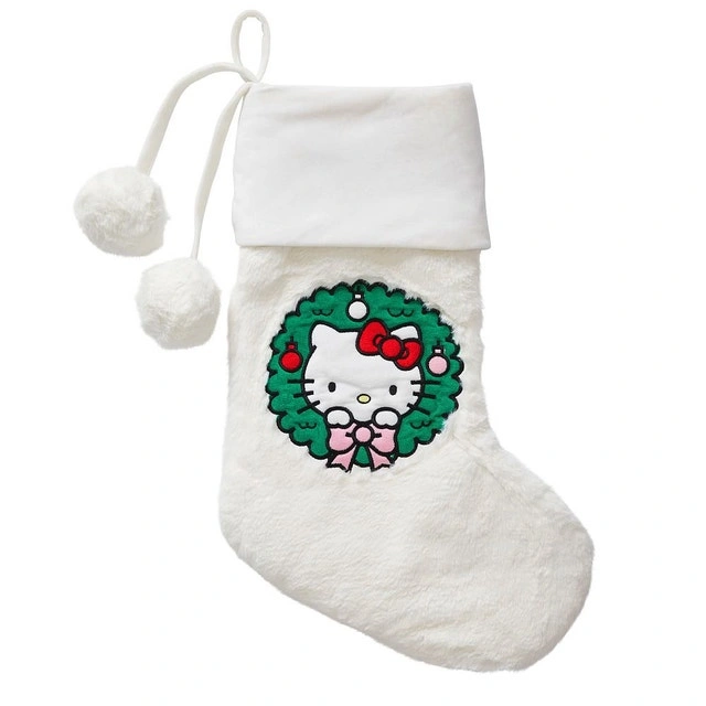 Make it a supercute holiday with this darling Hello Kitty recycled stocking. Ninety-five percent of the fabric is made from recycled plastic bottles. Made from 100% recycled polyester fur. The polyester is made from over 13 recycled plastic bottles. 100% recycled polyester cuff and interior. Imported. Overall: 8.5" wide x 20" high. Top Opening: 8.5" wide. Cuff: 5.5". Top Of Cuff To Heel: 15.5". Heel To Toe: 11". Hanging Loop: 3" long. Weight: 0.5 pounds. Machine wash in cold water; gentle cycle. Tumble dry on low heat. Do not iron. Condition: New. For Sale By: Owner.
